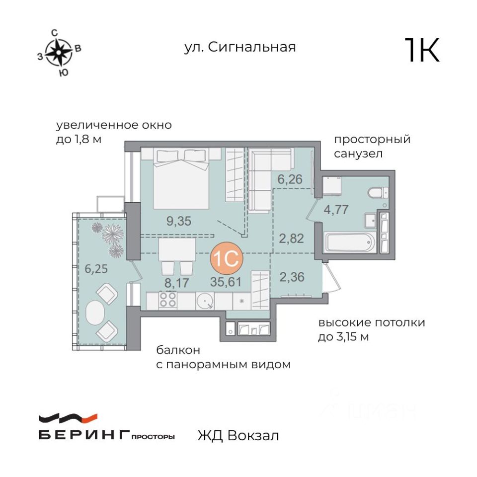 ФИНАЛ ПРОДАЖ ДВ ипотека от 1%, семейная - от 5% Ключи весной Просторная 1-комнатная квартира 42 м². Здесь спальня, кухня, комфортный санузел и большой балкон с панорамным видом, его можно оборудовать под рабочее место или зону отдыха. Высокие потолки 2,85 - 3,15 м, увеличенные окна до 1,8 м, балкон с панорамным остеклением - все это дает максимум света, легкости и свободного пространства дома. ЖК Беринг.Просторы: р-н ЖД вокзала - 3 мин до центра города. Амурский бульвар, школы, детские сады и Самбери в 10 мин пешком. 18 этажей Высокие потолки 2,85-3,15 м и большие окна до 1,8 м Приватная территория под видеонаблюдением. Во дворе есть место и для игр, и для спокойного отдыха Дизайнерские холл и отделка в подъезде На первом этаже колясочная, лобби для ожидания такси, гостевой санузел Подземный паркинг с лифтом от квартиры до машины. Цена от Застройщика без переплат и комиссий. УЛУЧШЕННАЯ ЧЕРНОВАЯ ОТДЕЛКА: > Стены под обои > Стяжка пола > Окна с откосами, подоконниками и фурнитурой > Сантехнические выпуски под установку оборудования > Горизонтальная система отопления > Подводка водоснабжения > Гидроизоляция в санузле > Распределительный щит для электропроводки > Системы вентиляции в кухонной зоне и санузле > Металлическая входная дверь Гардиан, которая не требует замены > Балкон с панорамным остеклением > Индивидуальные счетчики на все коммуникации ПРИДОМОВАЯ ТЕРРИТОРИЯ * Огорожена и закрыта от посторонних, находится под видеонаблюдением. * Наземный и теплый подземный паркинг, машино-место можно взять в АРЕНДУ. * Безопасная детская площадка в формате квеста для малышей и детей 6-12 лет. * Зоны отдыха для теплых бесед с друзьями. * Много зелени и освещения. РАСПОЛОЖЕНИЕ И ТРАНСПОРТНАЯ ДОСТУПНОСТЬ Добраться легко можно по пр-ту 60-летия Октября и с ул. Воронежской. Рядом расположены остановки (5 минут пешком): * Автовокзал * Пассажирское депо * Дорожная больница Вся самое важное для комфортной жизни находится совсем рядом (5-10 минут пешком): * продуктовый гипермаркет Самбери (8 минут пешком) и множество продуктовых минимаркетов рядом * школы 77, 1 и детские сады 143 и 34 * спорткомплекс Галактика (9 минут пешком) * ТЦ Квадрат (8 минут пешком) * гипермаркет детских товаров Бубль Гум (8 минут пешком) * пункты выдачи Ozon и Wildberries, Почта России (4 минуты пешком) *автосервисы (5 автосервисов в 2 минутах на авто) * салоны красоты (8 студий в 1-5 минутах) * ДВГУПС (3 минуты на авто) КЕТОМ - надежный хабаровский застройщик с опытом в жилом строительстве с 2009 года. В копилке компании 18 реализованных проектов. Все продажи ведутся через безопасные эскроу-счета ПСК по ДВ ипотеке 20,825% — 25,034% ПСК по семейной ипотеке 20,819% — 21,525%
