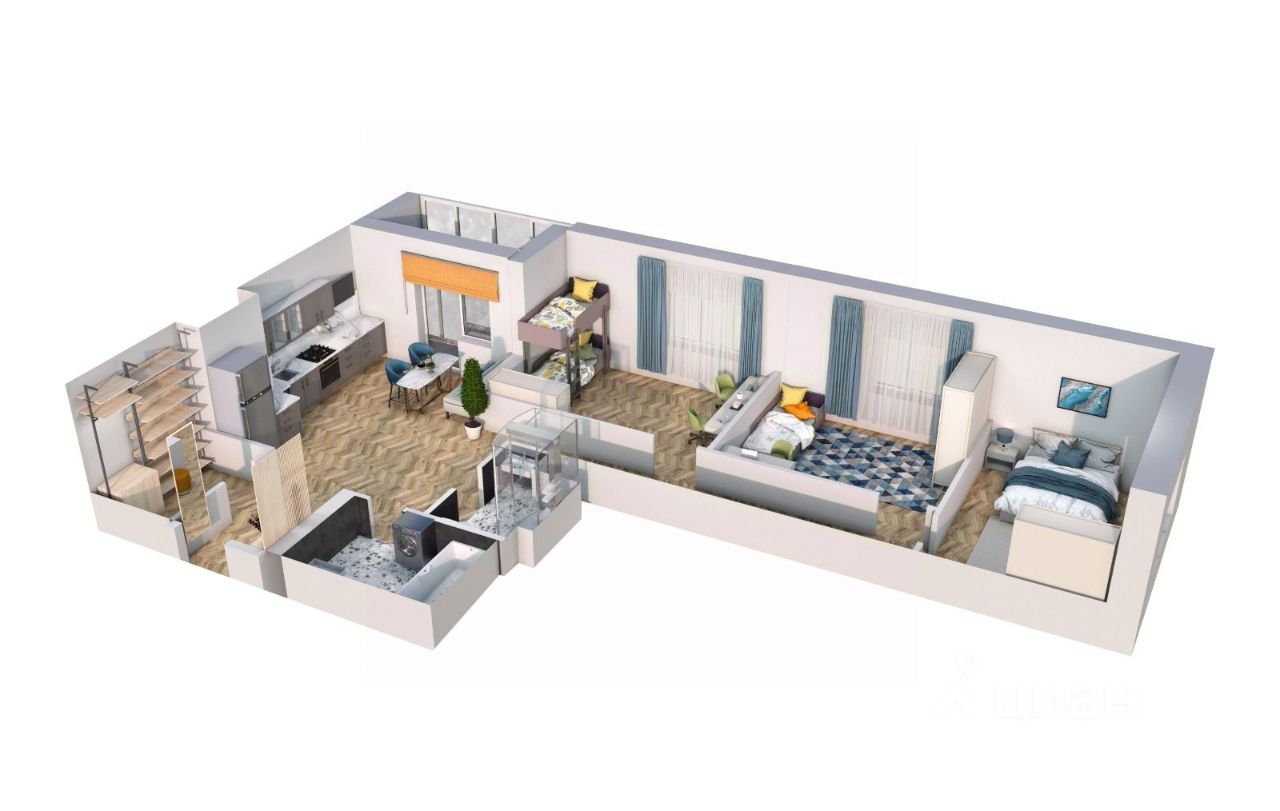 Атмосфера — жилой комплекс класса Комфорт плюс в 5 минутах от центра Хабаровска. Здесь сочетаются уединение, природное окружение и удобство городской инфраструктуры. ПРЕИМУЩЕСТВА Путешествия в любом направлении удобны благодаря транспортной развязке и быстрому выезду на главные автомагистрали. Премьера в театре, вернисаж в галерее, новый ресторан — все это становится естественным продолжением дня. Собственный парк площадью более 3 тысяч квадратных метров с тщательно продуманным ландшафтным дизайном создаёт атмосферу спокойствия и гармонии. Спортплощадки, прогулочные маршруты и велодорожки поддерживать хорошую форму легко и приятно прямо рядом с домом. Игровые зоны для детей разных возрастов, оборудованные современными и безопасными конструкциями. Квартиры в черновой, предчистовой отделке (white box) и свободной планировки, квартиры с двумя и тремя санузлами. Коворкинг и соседский центр работайте, не покидая дом, создавайте новые социальные связи и становитесь частью сообщества жильцов. ЛОКАЦИЯ ЖК расположен на улице Албанской, в районе остановки ''Памятник партизанам''. О КВАРТИРЕ Планировка на 3 стороны света обеспечивает отличную циркуляцию воздуха и естественное освещение. Возможность разместить спальни и личные зоны на одной стороне, а гостиную, кухню и рабочие места — на другой. Такой подход повышает комфорт и приватность. Площадь 77,04м2 2 санузла В прихожей оборудовано место под встроенную мебель. Варианты приобретения квартиры: ИПОТЕКА. Выгодная процентная ставка для наших клиентов. РАССРОЧКА 0% от застройщика. Удобные платежи и гибкие сроки. alfa-обмен. Возможность обменять вашу квартиру на новую в нашем ЖК.