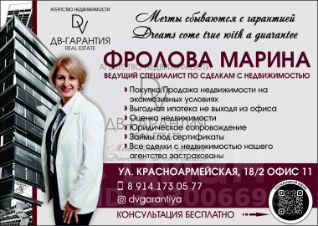 Арт. 122488290 Продам комнату в трёхкомнатной квартире по адресу Дзержинского 4.Общаям площадь составляет 21.9 КВ.м. Комната с балконом. Имеется кондиционер Удобный район рядом с автовокзалом . Тёплая и солнечная. Счётчик на электричество имеется. По соседству живёт семя с детьми. Подойдёт любой вид расчёта. Звоните!Агентство недвижимости ''ДВ-Гарантия REAL ESTATE'' оказывает высококвалифицированные услуги в решении самых сложных жилищных вопросов. На протяжении 10 лет мы обеспечиваем желаемый результат для тысяч наших клиентов. Если вам необходимо:Выгодно продать, купить, обменять недвижимость.Получить положительное решение по ипотеке даже с плохой кредитной историей.Приобрести объект в ипотеке с запрещением на регистрационные действия, арестами, долгами.Произвести размен и разъехаться.Оформить приватизацию.Продать ипотечную недвижимость. Приобрести объект в другом регионе страны.Решить другие вопросы,специалисты ''ДВ-Гарантия REAL ESTATE'' будут рады помочь вам. Для вас:Бесплатные консультации, предварительная оценка и подача заявки на ипотеку.Глобальное сопровождение сделок, юридическая поддержка.Правовая экспертиза и оценка недвижимости.Ипотека на самых выгодных условиях по сниженным ставкам.Образцовый хоумстейджинг, идеальный маркетинговый план продажи, безупречная презентация объекта.Поиск лучшего для вас варианта с учетом всех ваших потребностей.Подготовка полного пакета документов. Все виды сертификатов. Сельская, дальневосточная ипотека. Господдержка и жилищные программы.Работа с материнскими и региональными капиталами.Чуткое и внимательное постобслуживание.Для нас нет неразрешимых вопросов. Мы имеем партнёрскую сеть по всем городам России. Гордимся нашей безупречной репутацией и подтвержденными компетенциями наших специалистов. Гарантируем качество, прозрачность и полную безопасность сделок, - нам можно доверять.Мечты сбываются с Гарантией!