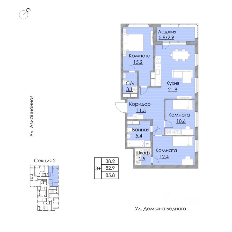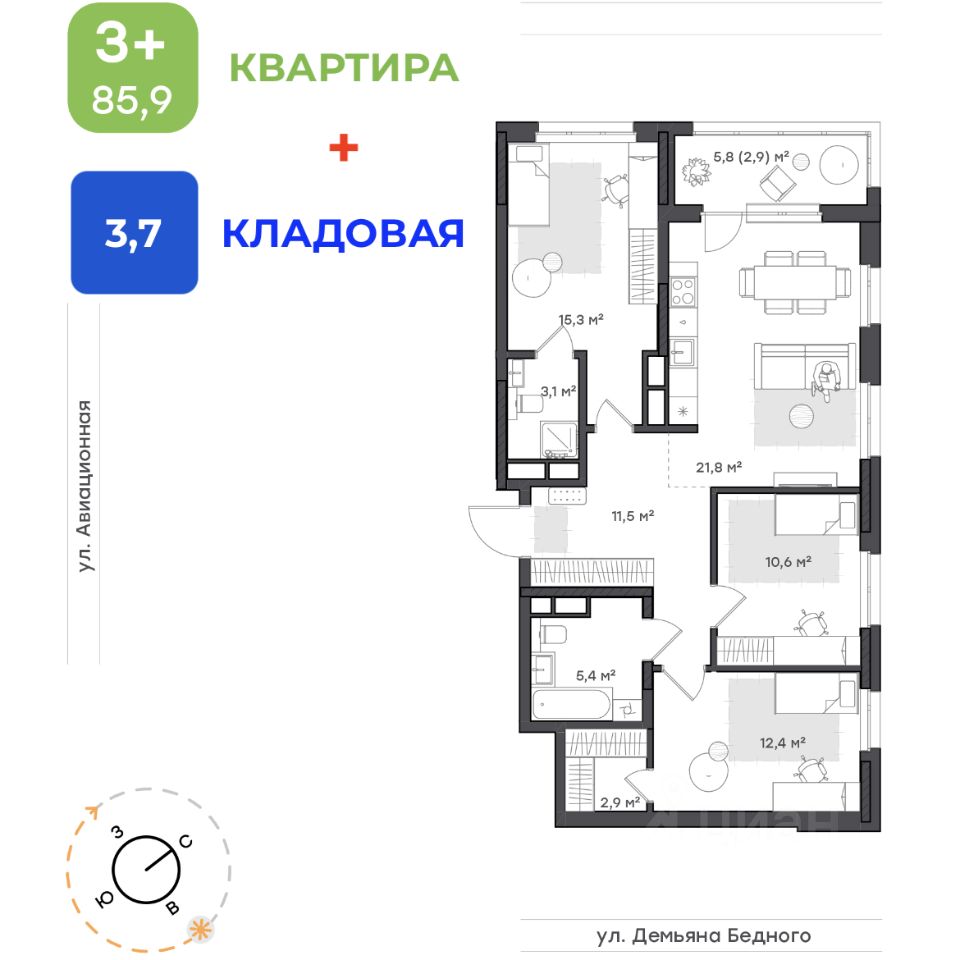 3+ квapтирa для большой cемьи площадь 85,9 кв м (+ кладовая 3.7 кв м)Особенности квартиры:- вместительная кухня-гостиная 21,8 кв. м.- просторная лоджия- 2 сан узла- множество ниш для шкафов- отдельная гардеробнаяОсобенности дома:- первый в городе дом с выходом к озеру и обустроенной зоной у него- предчистовая отделка- ответственный застройщик