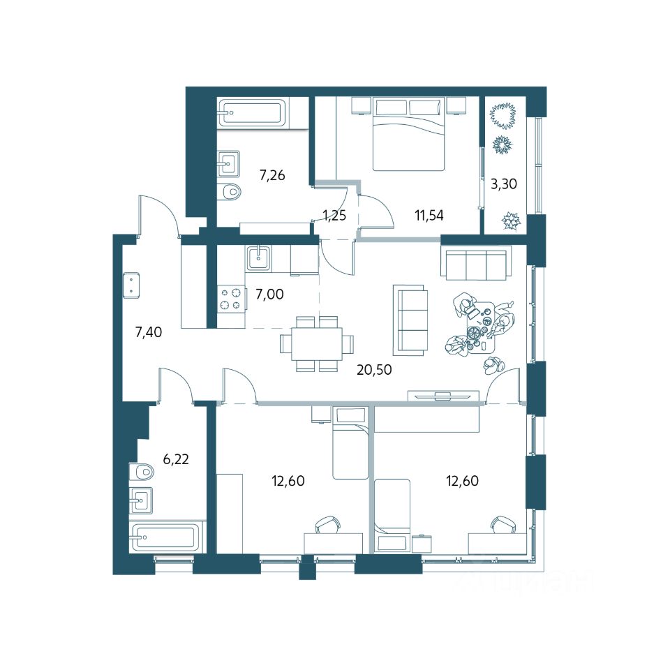 Трехкомнатные