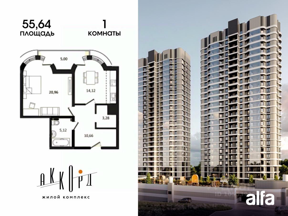 Продаётся 1-комнатная квартира 59,14 м2 от застройщика в жилом комплексе ''Аккорд''. О локации. ЖК ''Аккорд'' расположен в Северном районе вблизи важных транспортных узлов: ул. Трёхгорная, ул. Тихоокеанская и Воронежское шоссе. Это район уже с развитой инфраструктурой: два детских сада, две гимназии, медицинские учреждения, аптеки, почтовые и банковские отделения, магазины и кафе, Лемана Про, гипермаркет Самбери, кинотеатр и многое другое. В непосредственной близости расположены живописные парки, где можно насладиться прогулками на свежем воздухе и разнообразными развлечениями: парк Северный, аттракционы Вандерленд, уютный сквер Самбо-90, сквер Врачей и мемориальный парк Мира. Также неподалеку находится Приамурский зоосад им. В.П. Сысоева. О жилом комплексе. Состоит из двух домов высотой 25 этажей. На территории комплекса предусмотрена стильная и красочная детская площадка, которая станет настоящей радостью для маленьких жителей. Дизайн-проект подъездов продуман с особым вниманием к деталям, которые создадут уютную атмосферу. Для комфорта жителей в каждом подъезде предусмотрены 4 современных и безопасных лифта. О квартире. Кухня-гостиная и спальня с эркерной зоной Гардеробная Выход на большую лоджию Умный дом - - автоматическая передача показаний приборов учета, - автоматизированный доступ в места общего пользования ЖК с помощью беспроводной системы, не нужно даже доставать ключи из кармана - автоматическое открывание дверей - управление домофоном через приложение Отделка квартиры - предчистовая (White Box). Дополнительно вы можете приобрести услугу - чистовая отделка от застройщика. Данную квартиру вы можете приобрести по программе ТРЕЙД-ИН от alfa Development — это простой способ быстро и безопасно ПОМЕНЯТЬ ВАШУ СТАРУЮ КВАРТИРУ НА НОВУЮ! Девелопер проекта alfa Development Копания более чем с 16-летним опытом в строительстве 470 000 м2 строящихся и проектируемых проектов, 5 регионов присутствия.