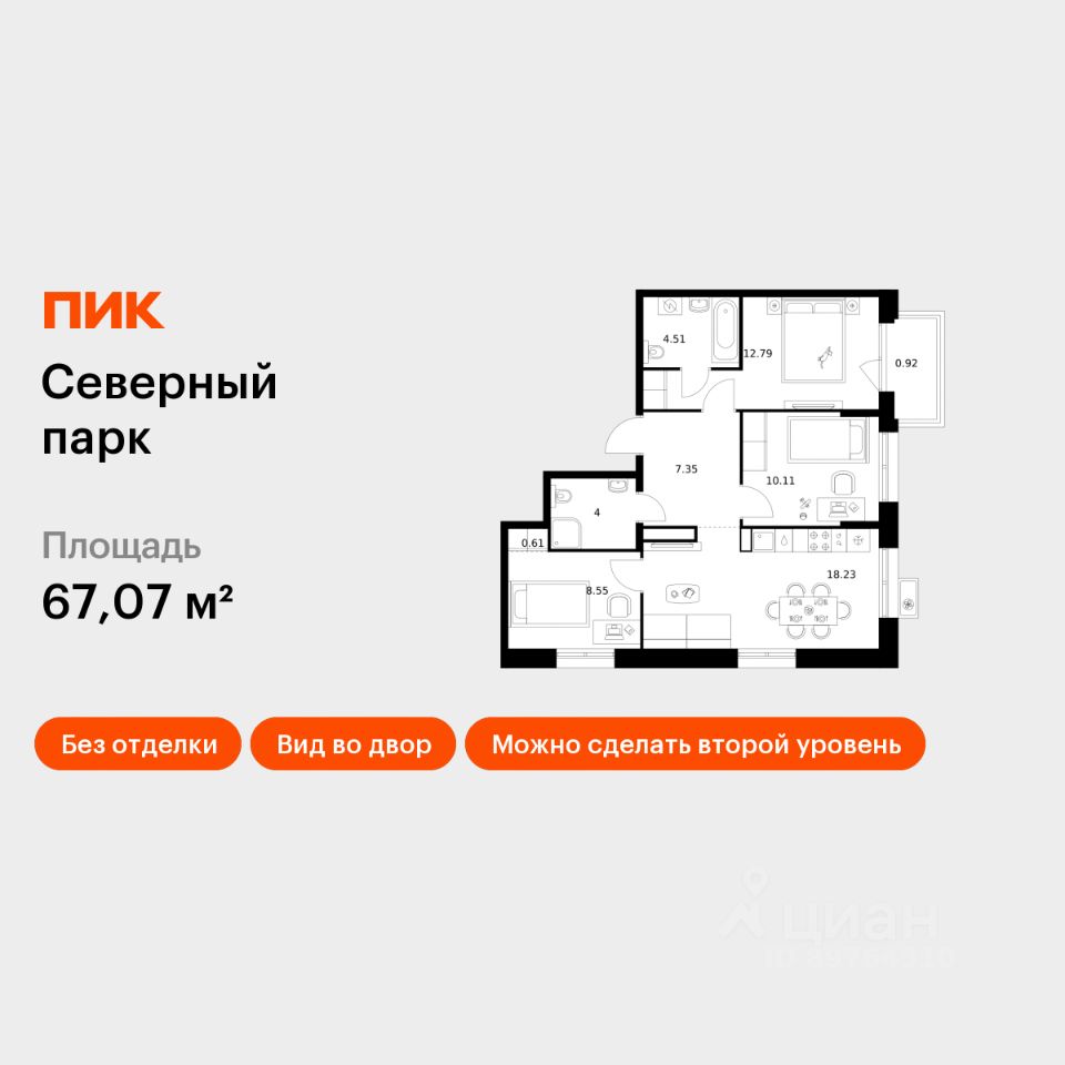 Продаётся 3-комн. квартира площадью 67,07 кв.м на 2 этаже 10 этажного дома (Корпус 11, Секция 3) проекта ПИК Северный парк. Светлый просторный подъезд на уровне земли, функциональная планировка, большие окна, без отделки. ''Северный парк'' - жилой квартал в развитом Железнодорожном районе Хабаровска с закрытыми дворами-парками, школой, детским садом и спортхабом. До центра города получится добраться за 10 минут на автомобиле. ''Северный парк'' возводится на пересечении улиц Воронежской и Совхозной, в 10 минутах езды от центра Хабаровска. В проекте будет 30 корпусов. На входе в жилой квартал появится Welcome plaza - площадь с малыми архитектурными формами. Входы в подъезды ''Северного парка'' мы сделаем на уровне земли для комфортного перемещения по территории квартала любым способом: пешком, на самокате или с коляской. Благодаря панорамному остеклению, которое пропускает много естественного света, первые этажи будут просторные и светлые. В квартирах предусмотрены большие окна, застеклённые балконы и лоджии - будет светло и уютно даже зимой. Все квартиры сдаются с предчистовой или полной отделкой на выбор. В каждом дворе будет парк - тихое приватное пространство для жителей, где красиво и уютно в любое время года и можно расслабиться после рабочего дня. Через весь квартал протянется широкий пешеходный бульвар с велодорожками, велопарковками, зонами для отдыха, детскими и спортивными площадками. В ''Северном парке'' будет всё необходимое для комфортной жизни: на первых этажах откроются магазины, кафе и полезные сервисы. Внутри жилого квартала запланировано строительство школы и детского сада. Для удобства жителей предусмотрены многоуровневые паркинги, индивидуальные кладовые и колясочные. Артикул 989376 (Застройщик ООО ''СЗ ПРОЕКТ СТРОЙ'')