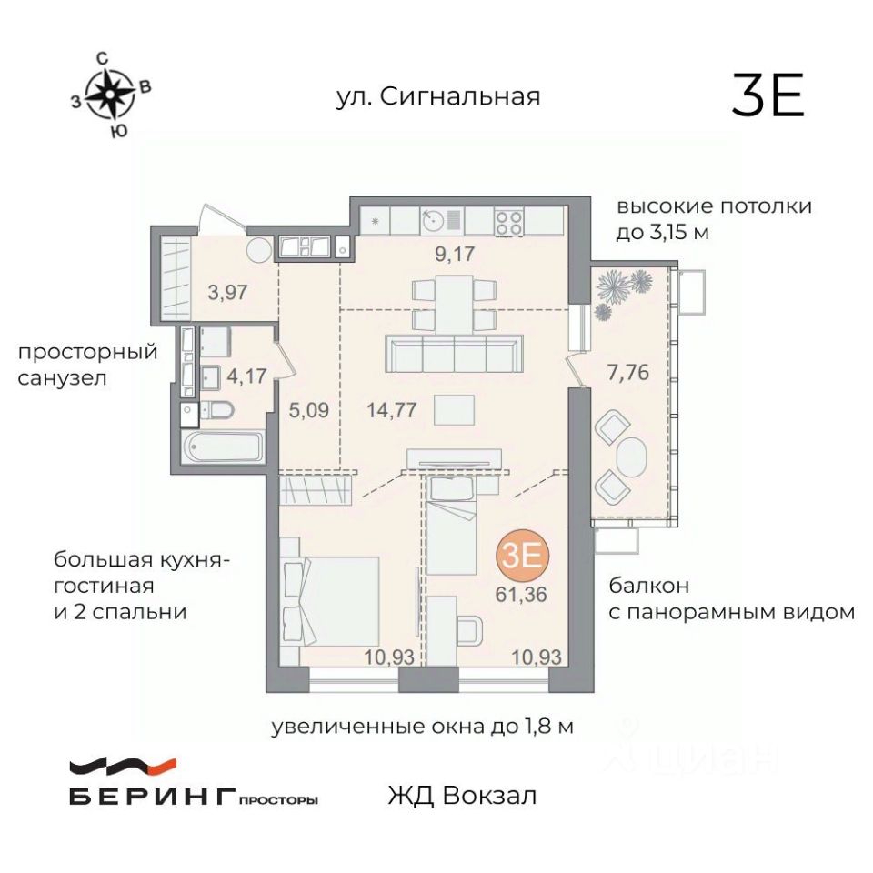 ФИНАЛ ПРОДАЖ ДВ ипотека от 1%, семейная - от 5% Ключи через 3 месяца Светлая евротрешка 62 м². Здесь 2 отдельных спальни, просторная кухня-гостиная, комфортный санузел и большой балкон с панорамным видом, который можно оборудовать как зону отдыха или рабочее место. Высокие потолки 2,85 - 3,15 м, увеличенные окна до 1,8 м, балкон с панорамным остеклением - все это дает максимум света, легкости и свободного пространства дома. ЖК Беринг.Просторы: р-н ЖД вокзала - 3 мин до центра города. Амурский бульвар, школы, детские сады и Самбери в 10 мин пешком. 18 этажей Высокие потолки 2,85-3,15 м и большие окна до 1,8 м Приватная территория под видеонаблюдением. Во дворе есть место и для игр, и для спокойного отдыха Дизайнерские холл и отделка в подъезде На первом этаже колясочная, лобби для ожидания такси, гостевой санузел Подземный паркинг с лифтом от квартиры до машины. Машино-место можно взять в аренду с последующим выкупом Цена от Застройщика без переплат и комиссий. УЛУЧШЕННАЯ ЧЕРНОВАЯ ОТДЕЛКА: > Стены под обои > Стяжка пола > Окна с откосами, подоконниками и фурнитурой > Сантехнические выпуски под установку оборудования > Горизонтальная система отопления > Подводка водоснабжения > Гидроизоляция в санузле > Распределительный щит для электропроводки > Системы вентиляции в кухонной зоне и санузле > Металлическая входная дверь Гардиан, которая не требует замены > Балкон с панорамным остеклением > Индивидуальные счетчики на все коммуникации ПРИДОМОВАЯ ТЕРРИТОРИЯ * Огорожена и закрыта от посторонних, находится под видеонаблюдением. * Наземный и теплый подземный паркинг, машино-место можно взять в АРЕНДУ. * Безопасная детская площадка в формате квеста для малышей и детей 6-12 лет. * Зоны отдыха для теплых бесед с друзьями. * Много зелени и освещения. РАСПОЛОЖЕНИЕ И ТРАНСПОРТНАЯ ДОСТУПНОСТЬ Добраться легко можно по пр-ту 60-летия Октября и с ул. Воронежской. Рядом расположены остановки (5 минут пешком): * Автовокзал * Пассажирское депо * Дорожная больница Вся самое важное для комфортной жизни находится совсем рядом (5-10 минут пешком): * продуктовый гипермаркет Самбери (8 минут пешком) и множество продуктовых минимаркетов рядом * школы 77, 1 и детские сады 143 и 34 * спорткомплекс Галактика (9 минут пешком) * ТЦ Квадрат (8 минут пешком) * гипермаркет детских товаров Бубль Гум (8 минут пешком) * пункты выдачи Ozon и Wildberries, Почта России (4 минуты пешком) *автосервисы (5 автосервисов в 2 минутах на авто) * салоны красоты (8 студий в 1-5 минутах) * ДВГУПС (3 минуты на авто) КЕТОМ - надежный хабаровский застройщик с опытом в жилом строительстве с 2009 года. В копилке компании 18 реализованных проектов. Все продажи ведутся через безопасные эскроу-счета ПСК по ДВ ипотеке 21,834% - 26,105% ПСК по семейной ипотеке 21,828% - 22,592%