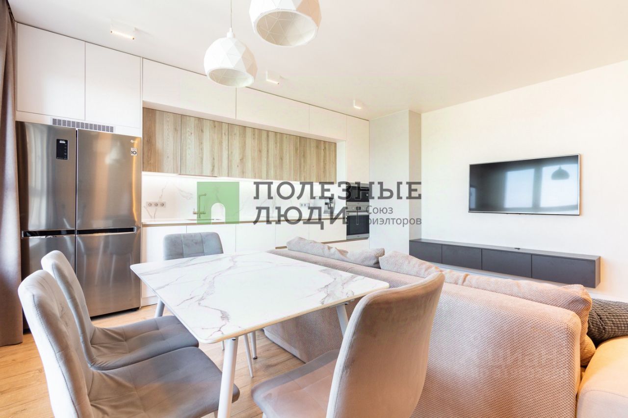 Предлагается к продаже 3-комнатная квартира в жилом комплексе ''Поколения'' от федерального застройщика ТАЛАН. ПЛАНИРОВКА Планировочное решение представлено просторной кухней-гостиной и 3 изолированными жилыми комнатами: взрослой спальней и 2 детскими. Полезная площадь взрослой спальни была увеличена за счёт присоединения лоджии. Ванная комната и туалет отделены друг от друга и являются полноценными санузлами, в коридоре организована просторная гардеробная, также имеется объемная система хранения в прихожей. ОПИСАНИЕ Ремонт выполнен по дизайн-проекту и завершен в 2022г, в отделке применялись современные решения и материалы: итальянский керамогранит, фактурная декоративная штукатурка, двери скрытого монтажа, дорогостоящее освещение с различными сценариями включения, сантехника grohe. Организованы теплые полы в обоих сан.узлах и на лоджии, установлен водонагреватель на 100л. ИНФРАСТРУКТУРА Дворовая территория устроена по принципу ''двор без машин'' - стоянка автомобилей отделена от остальной территории дома. Имеется детская и спортивная площадки, подъезды выполнены сквозным способом - выход и на улицу и во двор. Входная группа в подъезд не имеет ступенек, что позволяет легко попадать в подъезд с детскими колясками и тд. Арт. 109899872