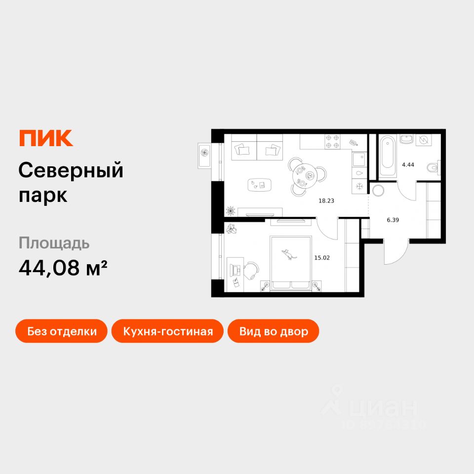 Продаётся 1-комн. квартира площадью 44,08 кв.м на 6 этаже 10 этажного дома (Корпус 11, Секция 1) проекта ПИК Северный парк. Светлый просторный подъезд на уровне земли, функциональная планировка, большие окна, без отделки. ''Северный парк'' - жилой квартал в развитом Железнодорожном районе Хабаровска с закрытыми дворами-парками, школой, детским садом и спортхабом. До центра города получится добраться за 10 минут на автомобиле. ''Северный парк'' возводится на пересечении улиц Воронежской и Совхозной, в 10 минутах езды от центра Хабаровска. В проекте будет 30 корпусов. На входе в жилой квартал появится Welcome plaza - площадь с малыми архитектурными формами. Входы в подъезды ''Северного парка'' мы сделаем на уровне земли для комфортного перемещения по территории квартала любым способом: пешком, на самокате или с коляской. Благодаря панорамному остеклению, которое пропускает много естественного света, первые этажи будут просторные и светлые. В квартирах предусмотрены большие окна, застеклённые балконы и лоджии - будет светло и уютно даже зимой. Все квартиры сдаются с предчистовой или полной отделкой на выбор. В каждом дворе будет парк - тихое приватное пространство для жителей, где красиво и уютно в любое время года и можно расслабиться после рабочего дня. Через весь квартал протянется широкий пешеходный бульвар с велодорожками, велопарковками, зонами для отдыха, детскими и спортивными площадками. В ''Северном парке'' будет всё необходимое для комфортной жизни: на первых этажах откроются магазины, кафе и полезные сервисы. Внутри жилого квартала запланировано строительство школы и детского сада. Для удобства жителей предусмотрены многоуровневые паркинги, индивидуальные кладовые и колясочные. Артикул 989192 (Застройщик ООО ''СЗ ПРОЕКТ СТРОЙ'')