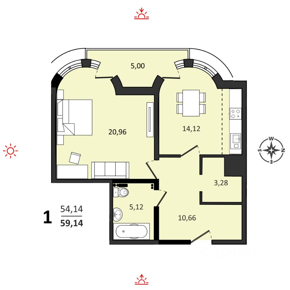 26 м² · Этаж 14 из 25