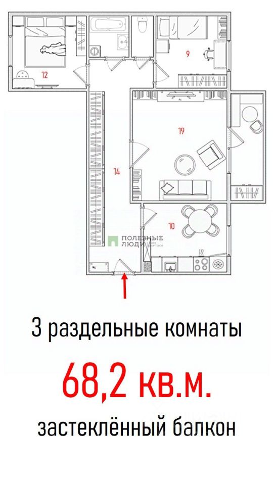 68 м² · Этаж 9 из 10