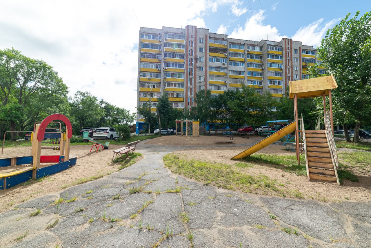 Арт. 116171303 Кратко: Кирпичный дом Средний этаж Качественный ремонт Раздельные комнаты ДОМ И ТЕРРИТОРИЯ. Здание построено в 1985 году из кирпича, что дает отличную тепло и звукоизоляцию. Придомовая территория ухожена, высажено много деревьев. Современная детская площадка. Есть всегда место для парковки авто. В доме отлично работает. Подъезд чистый, без посторонних запахов. ПЛАНИРОВКА И РЕМОНТ. Полноценная 2-ком кв. 52 кв.м. Кухня 8 кв.м. правильной формы, две раздельные комнаты 17 и 12 кв.м., а также совмещенный санузел 4 кв.м. Окна выходят на Восток, на ДВГУПС! РЕМОНТ В квартире сделан качественный ремонт. Выровнены стены и полы. Проведена новая электропроводка. На полу уложен ламинат, установлены качественные межкомнатные двери. Ванна отделана керамогранитом, установлена современная сантехника. Любую хозяйку порадует качественный кухонный гарнитур. В квартире остается: кухонный гарнитур, шкафы, обеденная зона на кухне, духовой шкаф, кондиционеры. ИНФРАСТРУКТУРА. Дом расположен в развитом районе города, напротив Дальневосточного государственного университета путей сообщения! В шаговой доступности расположены СОШ15, Гимназия4, детские сады 57, 138, 56. Уникальное расположение вблизи парковой зоны Амурского Бульвара, большого количества торгово-развлекательных центров, кафе, продуктовых магазинов, аптек и т.д. В нескольких минутах от дома расположены несколько автобусных остановок с которых можно уехать в любую точку города. Полностью готова к проживанию! Звоните, мы с удовольствием покажем её Вам и Вы убедитесь в этом лично!