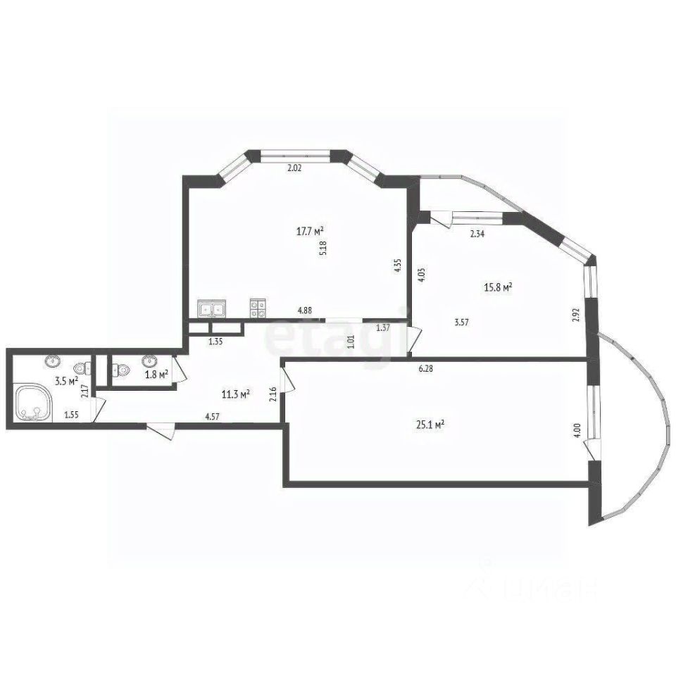 83 м² · Этаж 25 из 25