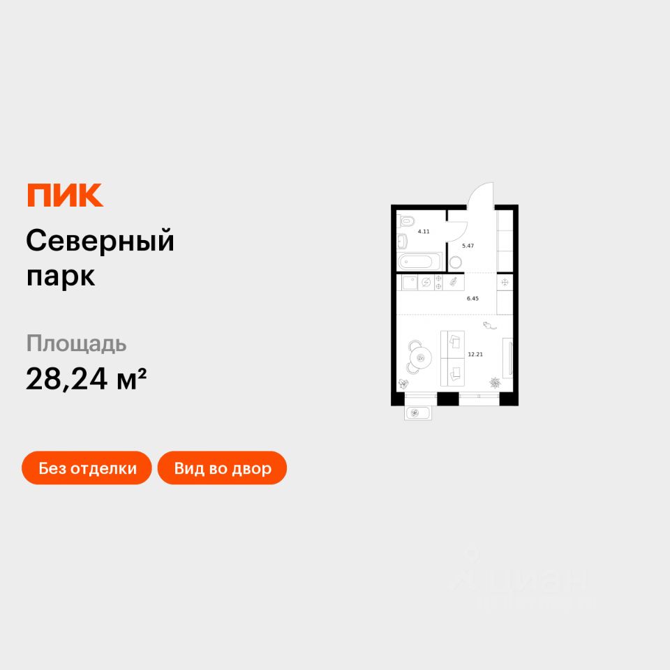 Продаётся квартира-студия площадью 28,24 кв.м на 10 этаже 10 этажного дома (Корпус 11, Секция 2) проекта ПИК Северный парк. Светлый просторный подъезд на уровне земли, функциональная планировка, большие окна, без отделки. ''Северный парк'' - жилой квартал в развитом Железнодорожном районе Хабаровска с закрытыми дворами-парками, школой, детским садом и спортхабом. До центра города получится добраться за 10 минут на автомобиле. ''Северный парк'' возводится на пересечении улиц Воронежской и Совхозной, в 10 минутах езды от центра Хабаровска. В проекте будет 30 корпусов. Входы в подъезды ''Северного парка'' мы сделаем на уровне земли для комфортного перемещения по территории квартала любым способом: пешком, на самокате или с коляской. Благодаря панорамному остеклению, которое пропускает много естественного света, первые этажи будут просторные и светлые. В квартирах предусмотрены большие окна, застеклённые балконы и лоджии - будет светло и уютно даже зимой. Все квартиры сдаются с предчистовой или полной отделкой на выбор. В каждом дворе будет парк - тихое приватное пространство для жителей, где красиво и уютно в любое время года и можно расслабиться после рабочего дня. Через весь квартал протянется широкий пешеходный бульвар с велодорожками, велопарковками, зонами для отдыха, детскими и спортивными площадками. В ''Северном парке'' будет всё необходимое для комфортной жизни: на первых этажах откроются магазины, кафе и полезные сервисы. Внутри жилого квартала запланировано строительство школы и детского сада. Для удобства жителей предусмотрены многоуровневые паркинги, индивидуальные кладовые и колясочные. Артикул 989363 (Застройщик ООО ''СЗ ПРОЕКТ СТРОЙ'')
