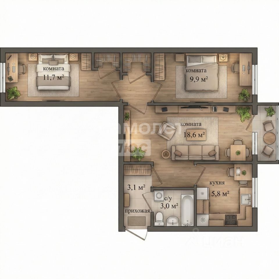 Трехкомнатные