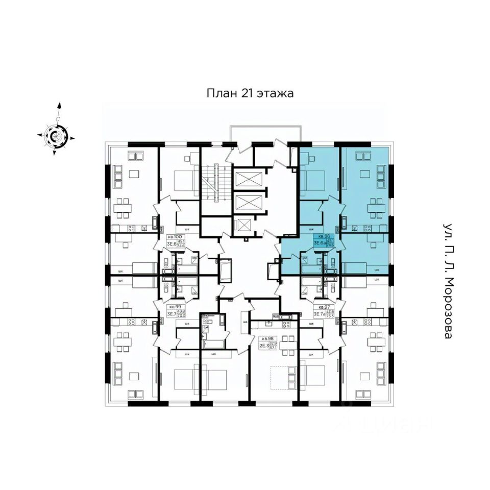 74 м² · Этаж 21 из 22