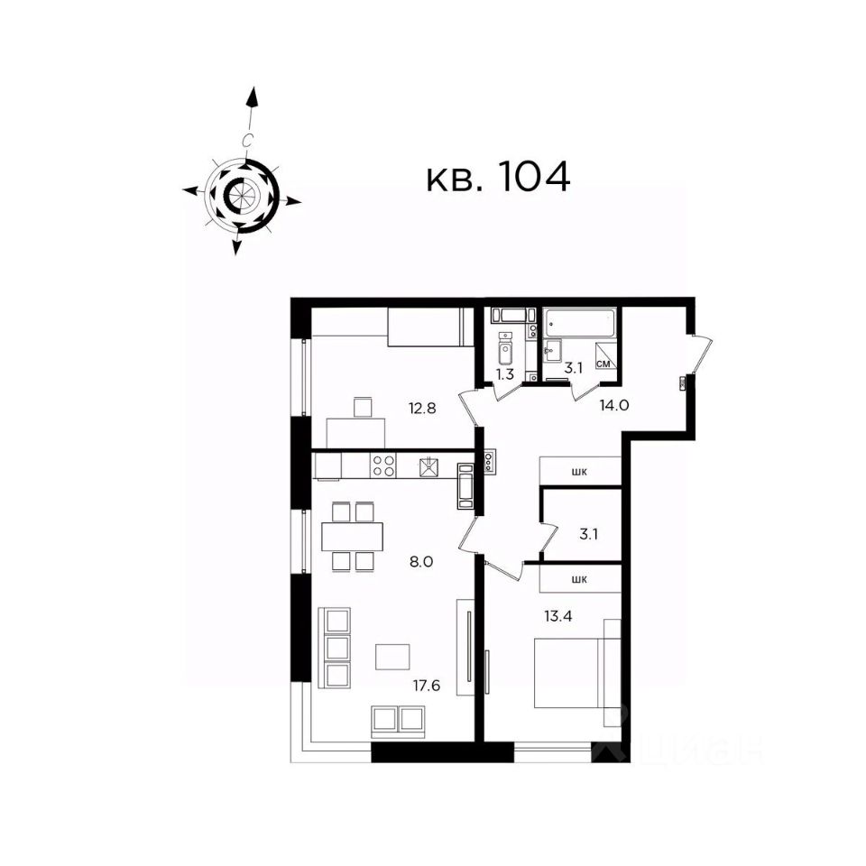 57 м² · Этаж 6 из 14