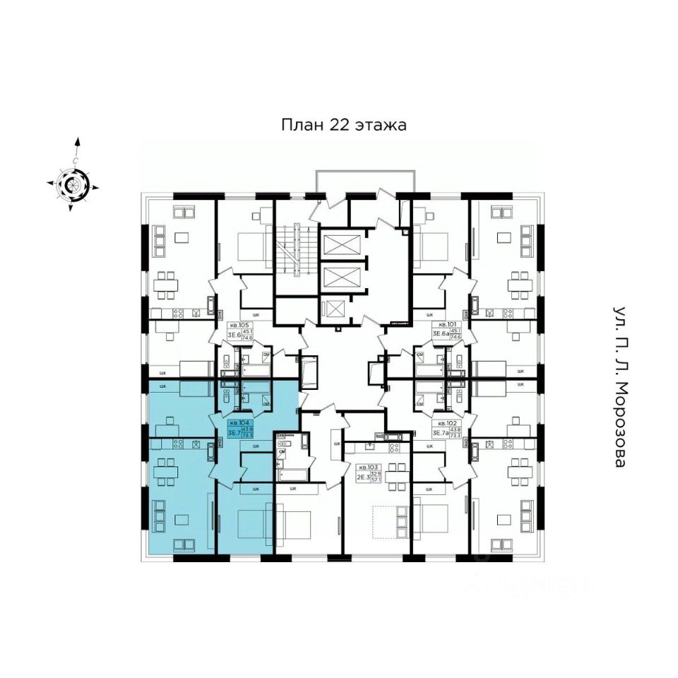 74 м² · Этаж 22 из 24
