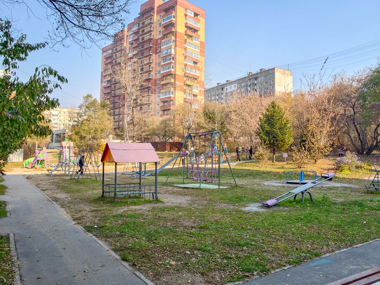 В квартире тепло зимой и не жарко летом. - рядом парк Северный, остановка автобусов, магазины бытовой техники и продуктов, пиццерия. - рядом кинотеатр ''Хабаровск'' с боулингом, детским городком и кафе. - рядом две школы и два детских сада. - недалеко два колледжа и два университета. - во дворе хорошая детская площадка, сам двор достаточно изолирован, чтобы отпускать детей гулять самостоятельно.