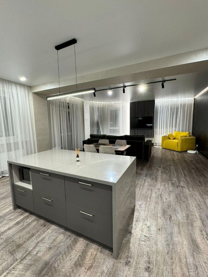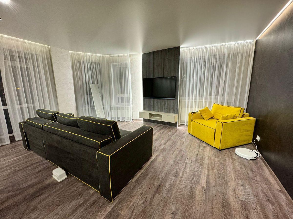 Новый дом. Центр города , парк Городские Пруды . Просторная квартира в идеальном состоянии, выполнен дорогой качественный дизайнерский ремонт, квартира полностью укомплектована дорогой европейской мебелью и бытовой техникой, есть всё для достойного комфортного проживания . Два санузла. В стоимость включены все коммунальные платежи .