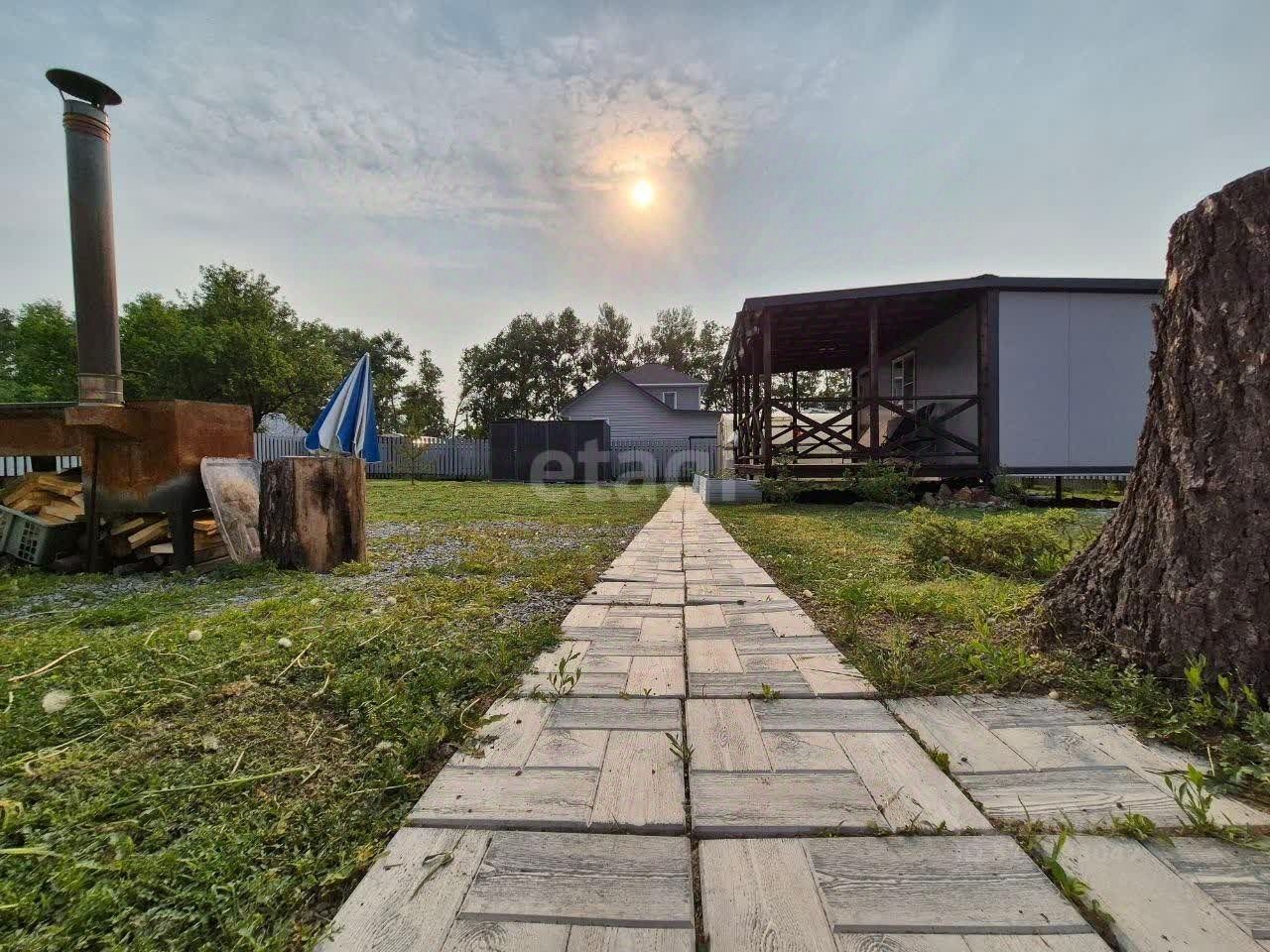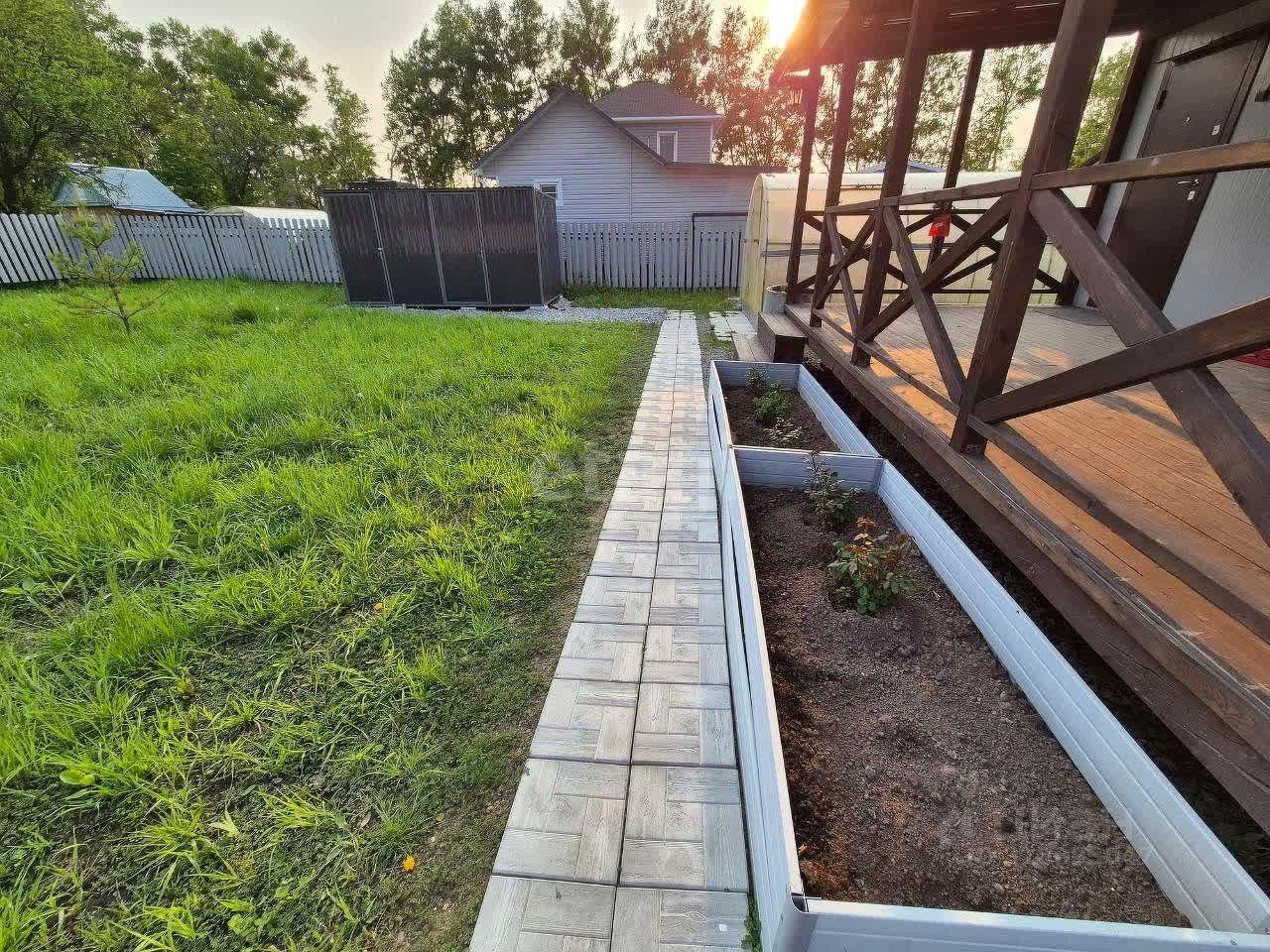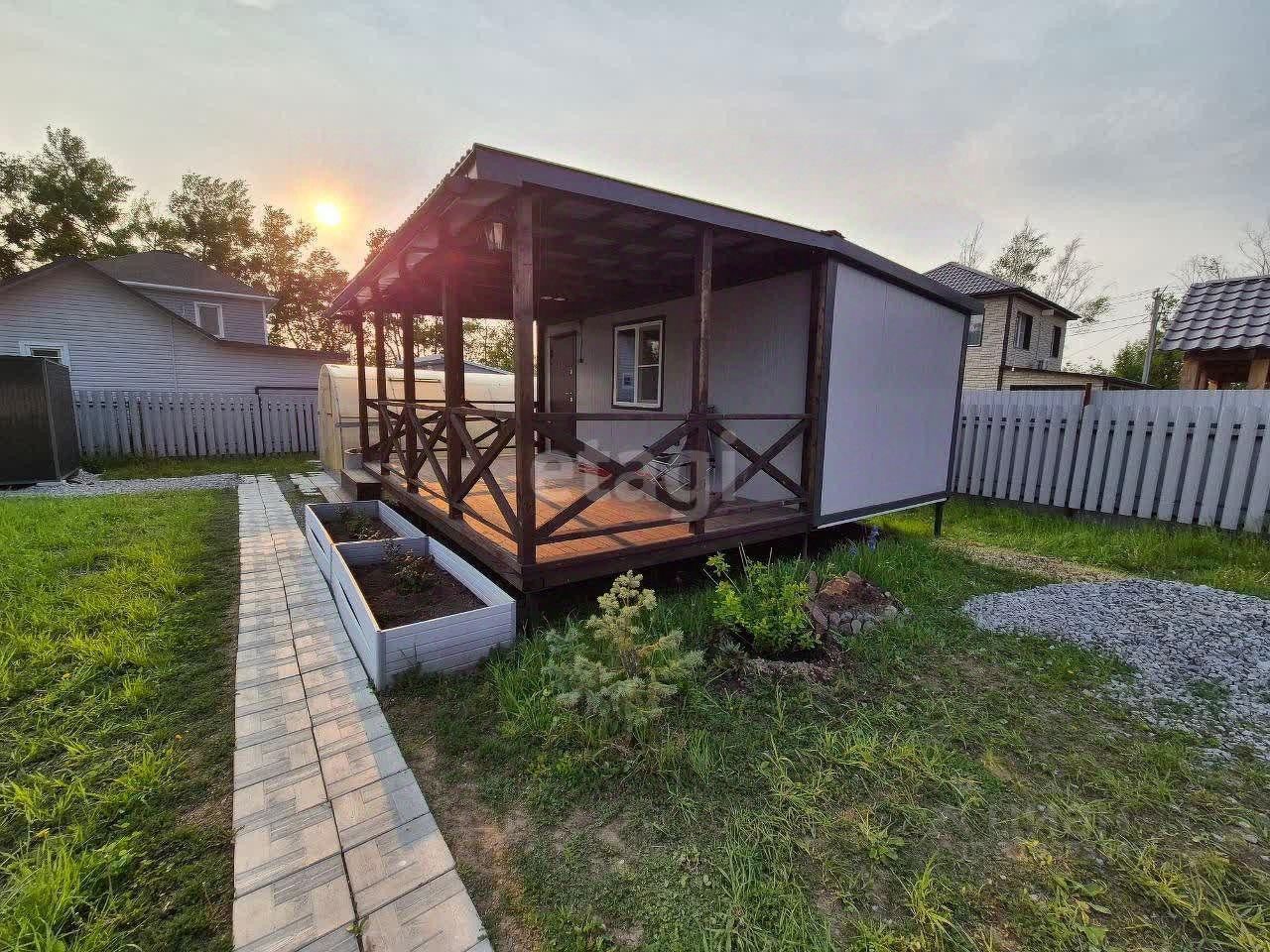 Что сделано, чем отличаемся от других: + Отсыпка участка по всему периметру - отсев по основным местам и сделаны тротуарные дорожки. + Выровняли полностью весь участок, досыпали большое количество земли. + Дом-бытовка на сваях с ремонтом - электричество 15кВт заведено в дом. + Стильная Терраса к дому еще на такую же площадь как дом. + Забор из профнастила по периметру - ворота и калитка с передней линии. + Теплица на фундаменте с ухоженными грядками. + Душевая летнего типа. + Сарай для хранения инвентаря и другого. + Оборудовано место для мангальной зоны, заезд для машин.