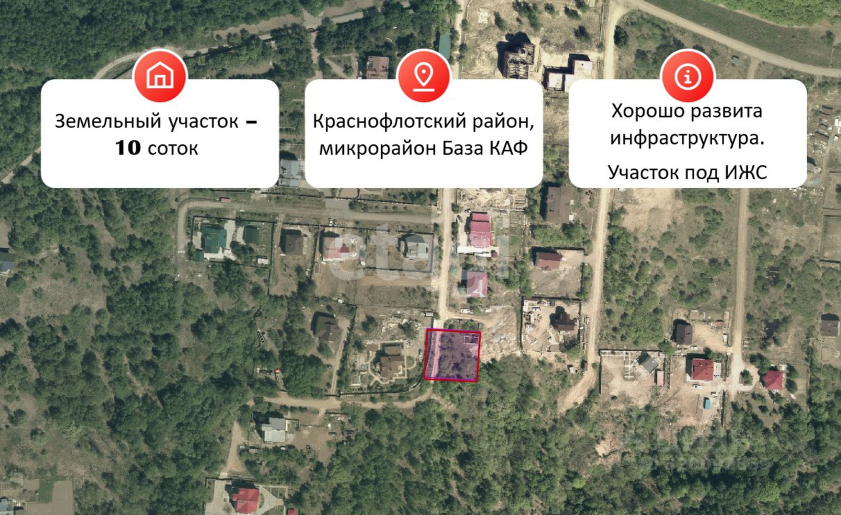 Земельный участок площадью 10 соток расположен в экологически благополучном районе города на территории бывшего КАФ, что обеспечивает спокойную атмосферу и чистый воздух. Участок предназначен для индивидуального жилищного строительства, имеет правильную форму и ровный рельеф, что упрощает планировку и возведение дома. Местность сочетает преимущества городской инфраструктуры с близостью к природе — вокруг зеленые зоны, а в пешей доступности находятся магазины, школы, детские сады и медицинские учреждения. Транспортная доступность высокая: рядом проходят основные автодороги, остановки общественного транспорта расположены в 57 минутах ходьбы, что позволяет быстро добраться до центра города и других ключевых районов.