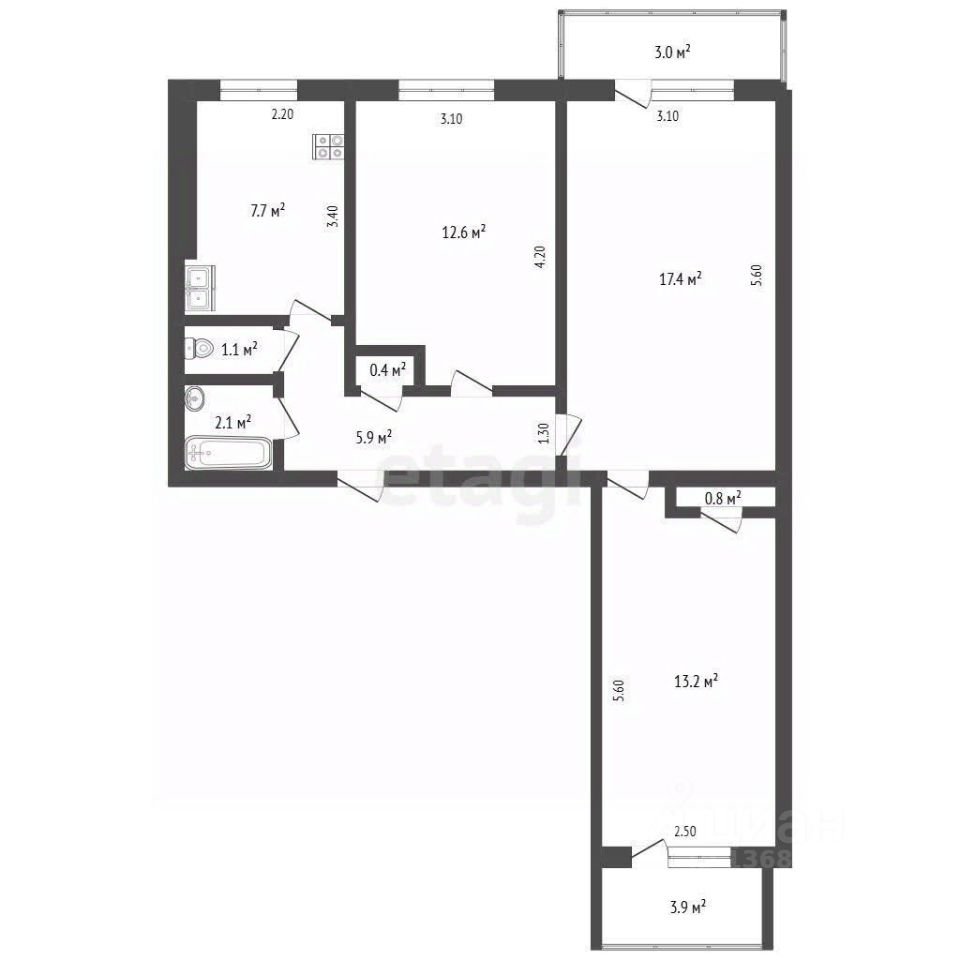 продам 3-к, Дикопольцева, 38 корп. 54 990 000 ₽