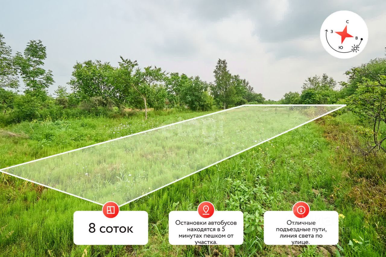 Остановки автобусов находятся в 5 минутах пешком от участка.
