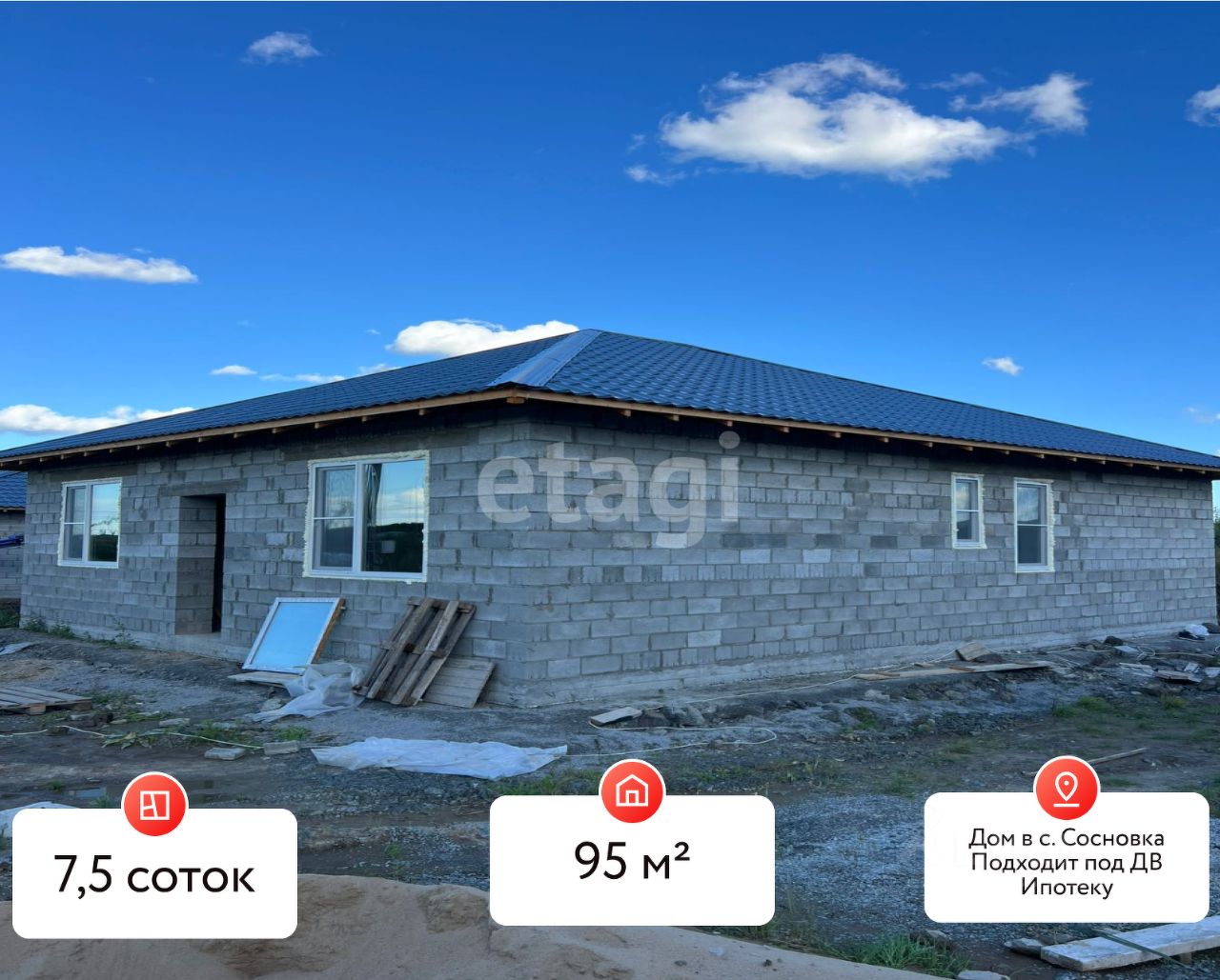 Предлагаем к продаже капитальный дом площадью 95 кв.м в развивающемся селе Сосновка, всего в нескольких минутах езды от Хабаровска.