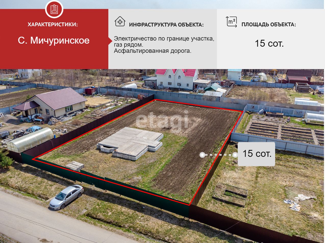 У Вас есть уникальная возможность стать обладателем земельного участка площадью 15 соток под индивидуальное жилищное строительство в живописном селе Мичуринское. Этот участок идеально подойдет для строительства загородного дома, ведь здесь уже заложен фундамент осенью 2017 года и разработан индивидуальный проект коттеджа.