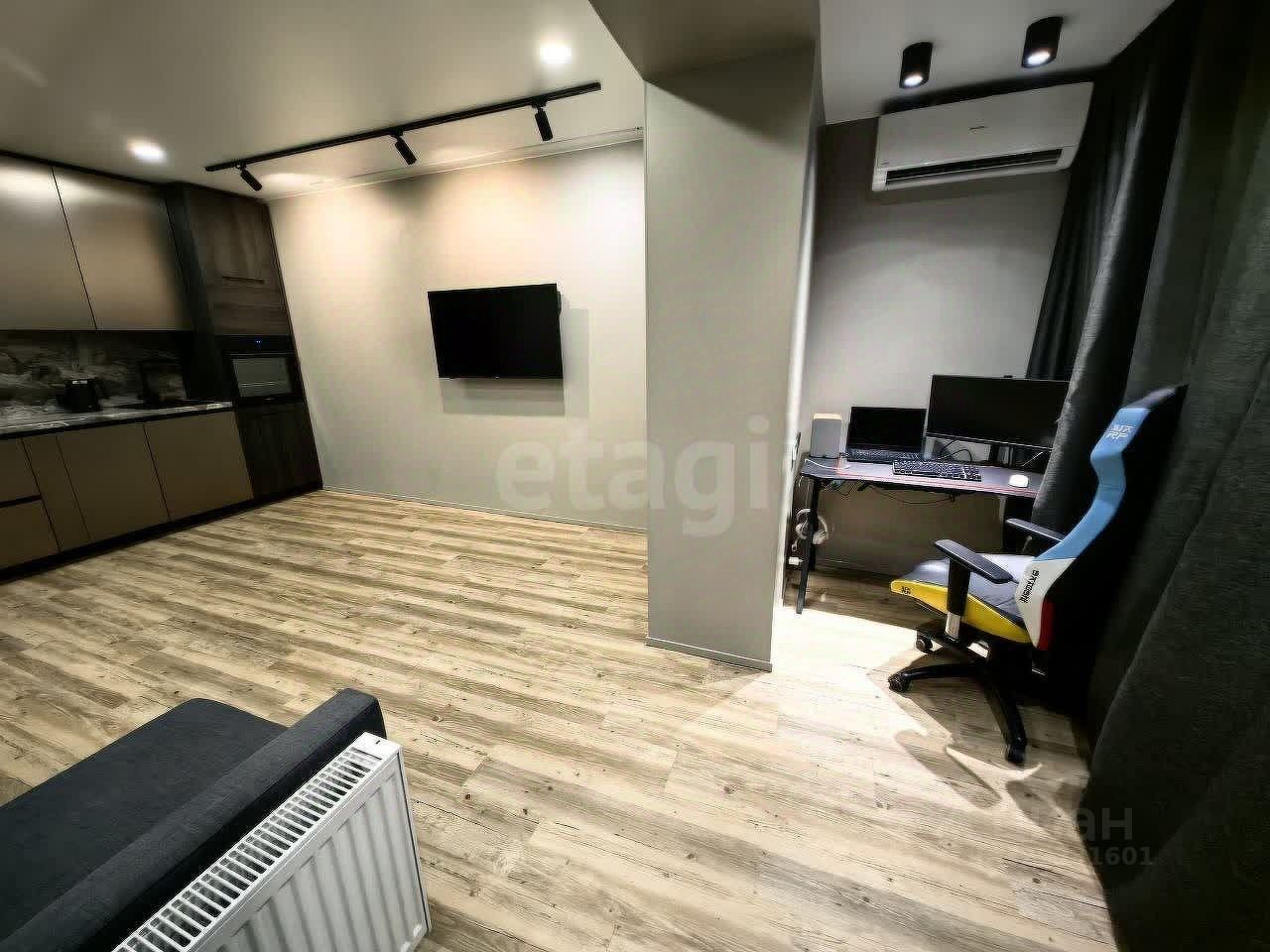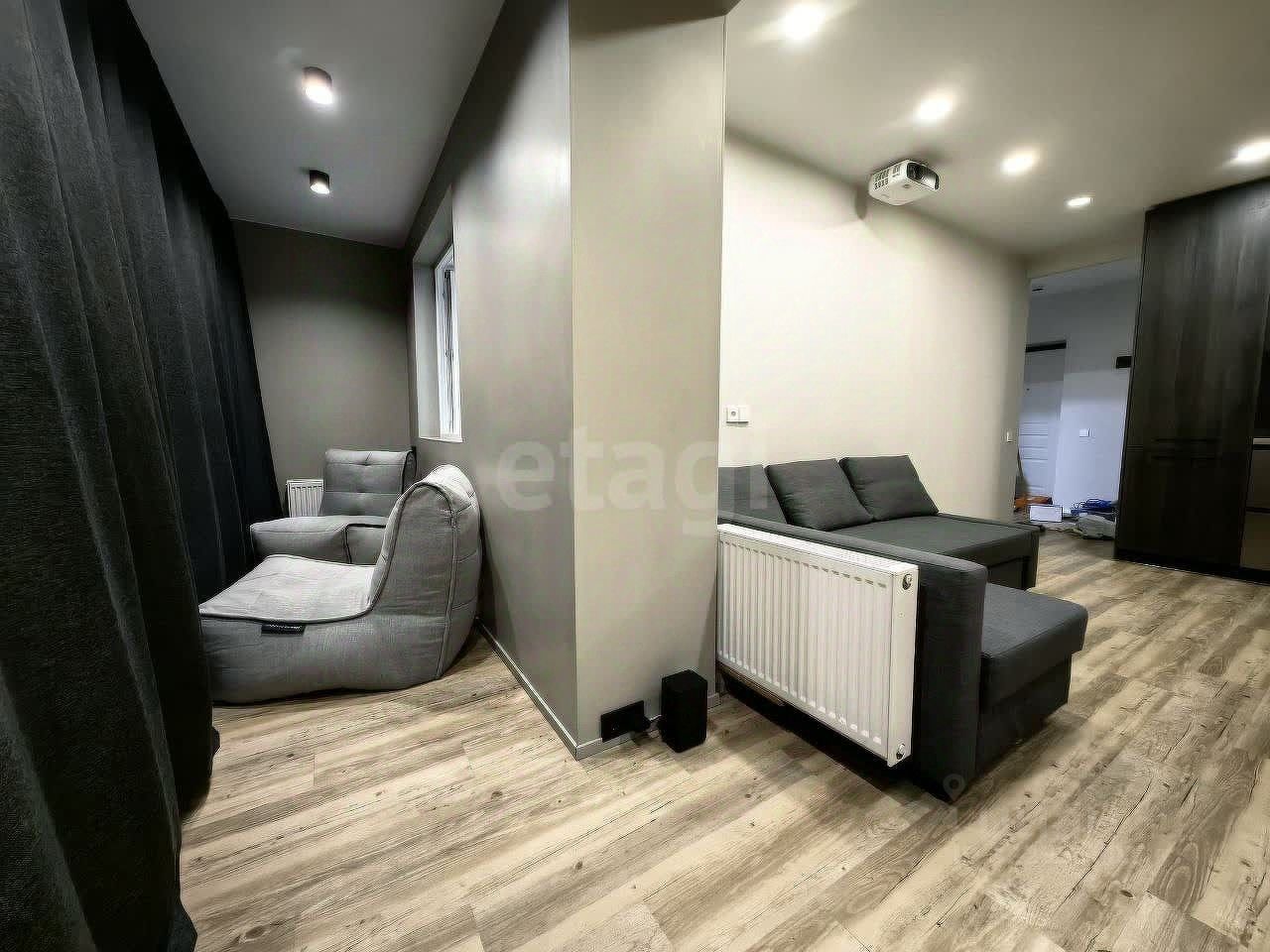 Преимущества квартиры: •Дизайнерский ремонт в стиле лофт. •Полностью укомплектована мебелью и техникой — не требует вложений. •Утеплённая лоджия (11 м², тёплый пол, утепление 100 мм ЭПП) объединена с гостиной. •Система Умный дом (Яндекс + Xiaomi): голосовое управление светом, шторами, климатом, сценариями. •Отдельная гардеробная.