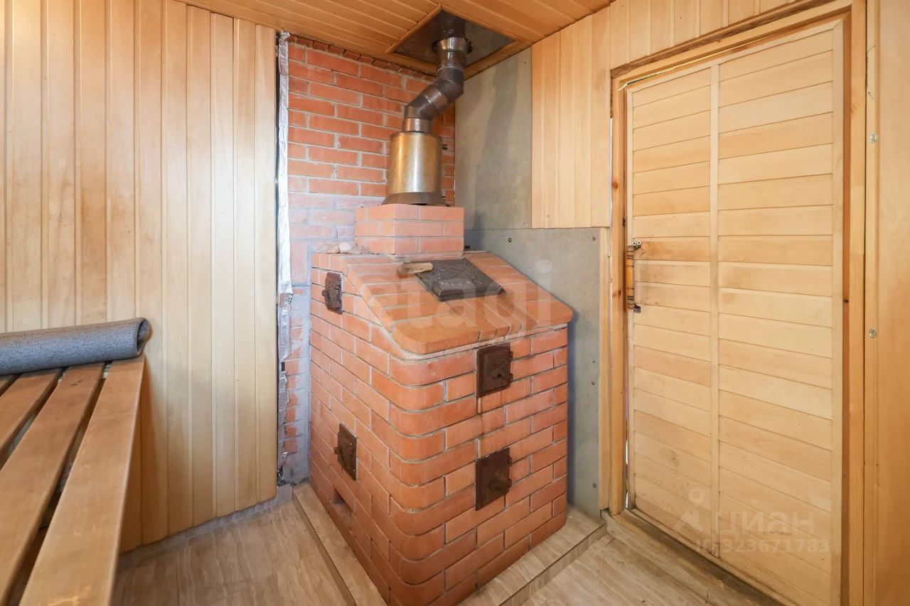 На участке построен дом из бруса на ленточном фундаменте, общей площадью 50 кв.м. (баня + жилая комната) + веранда 14 кв.м. Bнутри элeктpо кoтeл отопления (тeплый пoл), бойлер 100 литрoв, туaлeт со всеми удoбcтвами, душевая комната, кондиционер. Настоящая русская баня на дровах с чугунной печкой с закрытой каменкой в обкладке кирпичом, вентиляция, подача свежего воздуха в парную под печью и под топку, парилка отделана липовой вагонкой. На зимний период внутри стоит емкость с водой на 400 литров. Есть система умный дом, камера, поэтому управлять отоплением можно не приезжая. На участке имеется емкость для воды на 6 куб.м., шамбо 7 куб.м., колодец с технической водой. Электроснабжение мощностью 380 В (4,75 руб/кВт). Также на участке стоит небольшой летний домик, металлический гараж которые используются для хранения инвентаря. Насаждения: смородина черная, груша, виноград, жимолость, вишня, малина, калина.