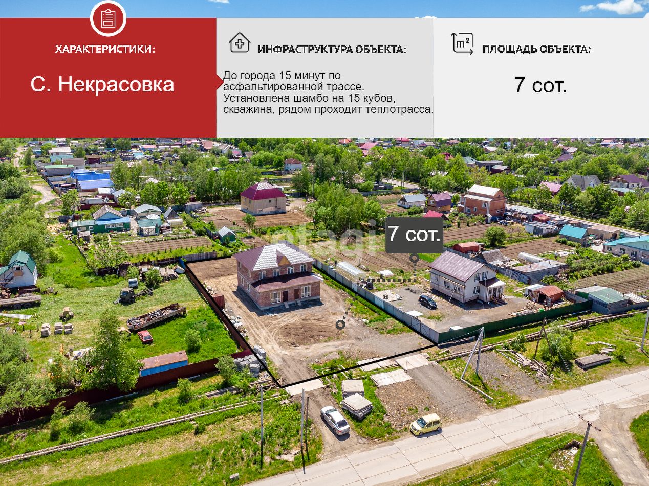 Дом подходит для оформления льготной ипотеки, что делает его доступным вариантом для покупателей. Село Некрасовка находится в 15 минутах езды от города по асфальтированной дороге, что удобно для ежедневных поездок на работу или учебу. В шаговой доступности расположены магазины, остановка общественного транспорта и другие необходимые объекты инфраструктуры. Участок позволяет разместить огород или организовать зону для отдыха.