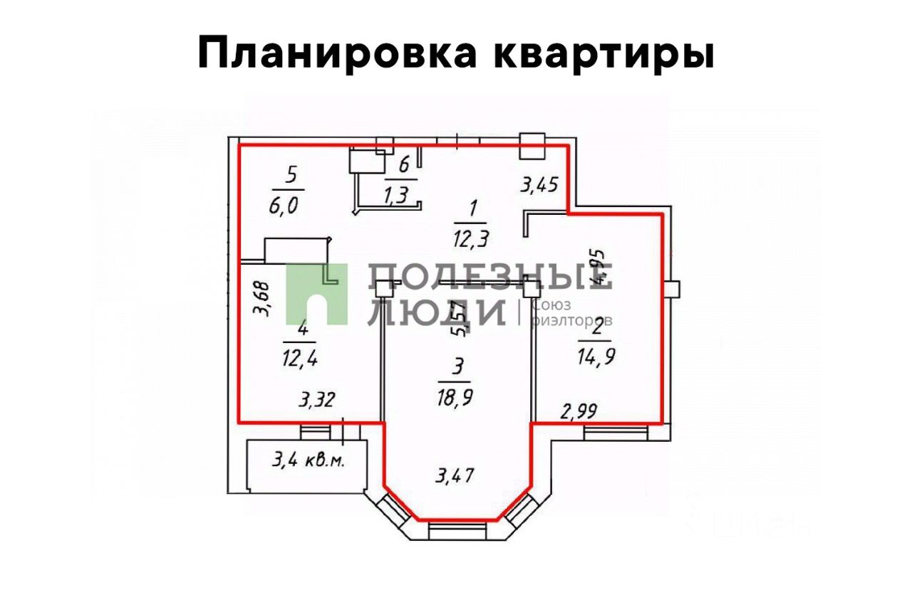 — просторная гостиная 18.9м с эркером и уютная спальня 14.9м