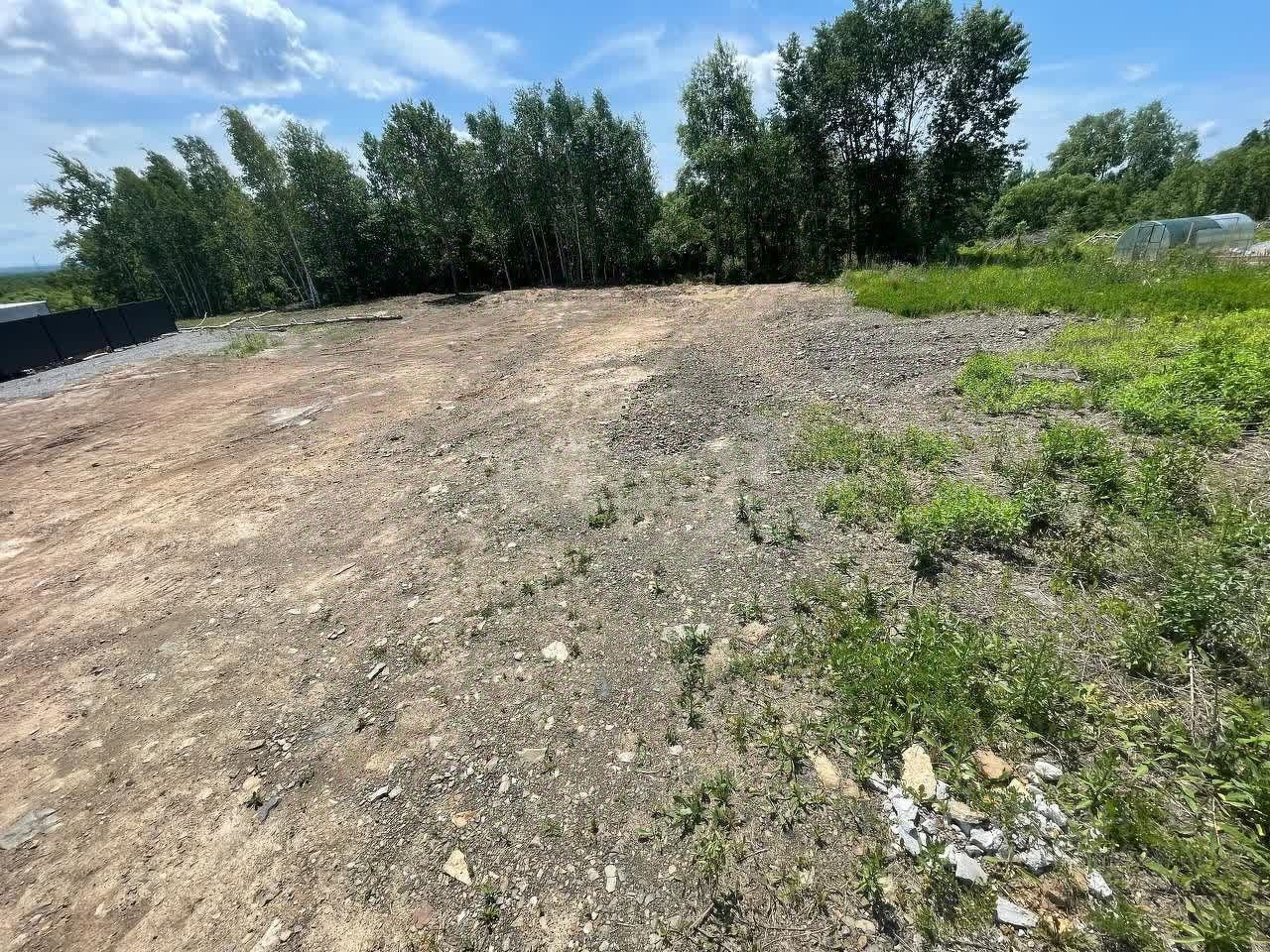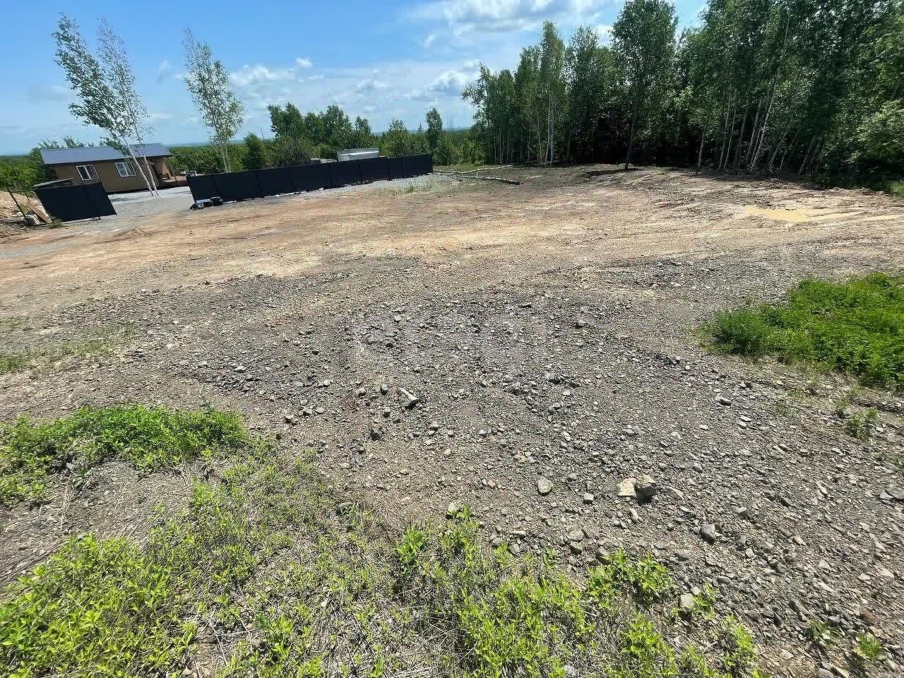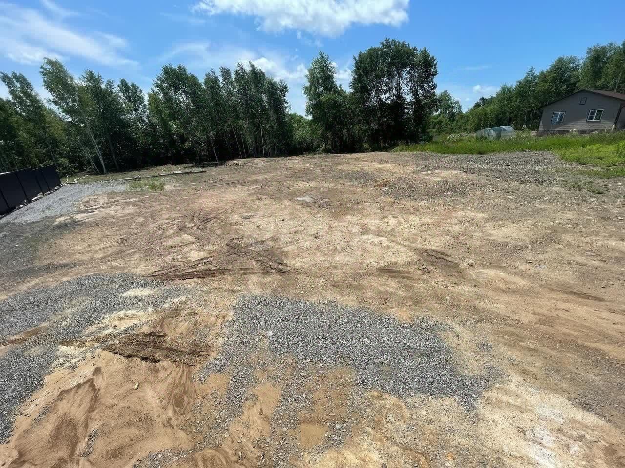 Участок правильной квадратной формы, отсыпан сланцем, выравнен и находится всего в 100 метрах от асфальтированной дороги.