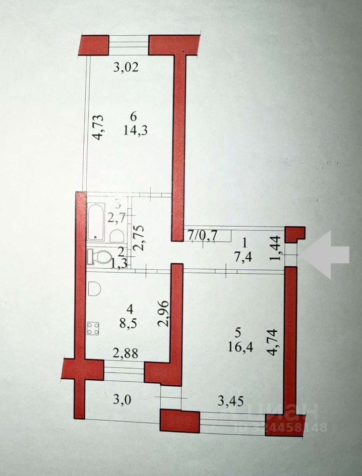 Квартира в доме улучшенной планировки, комнаты разделены.