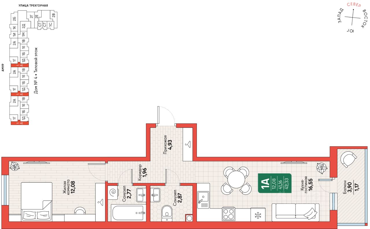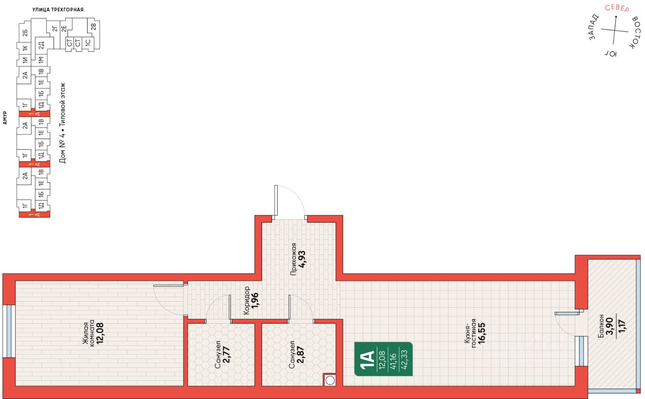 Общая площадь42,33 м2