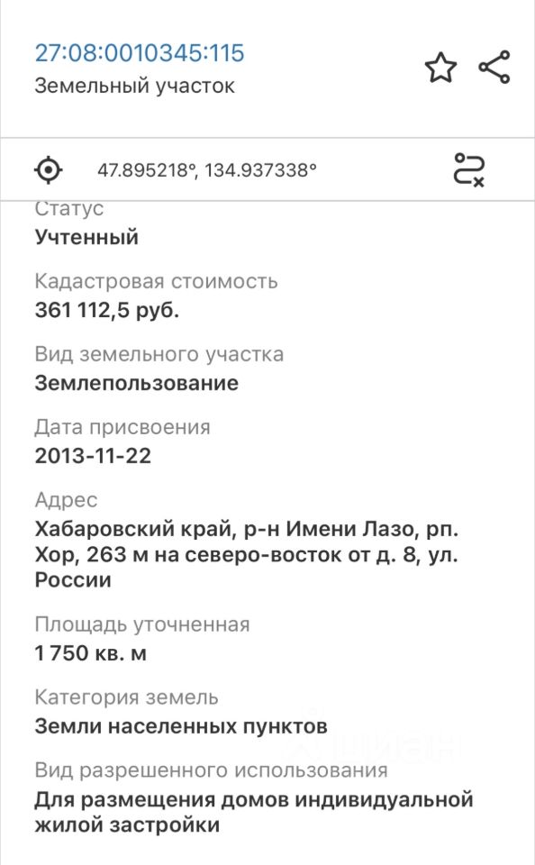 Кадастровый номер: 27:08:0010345:115