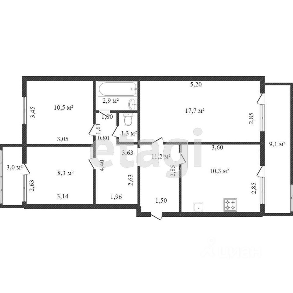 * Ваша мечта о большом балконе сбывается! Настоящая изюминка огромный балкон 9.1 кв.м. место для утреннего кофе, семейных обедов на свежем воздухе или вечернего отдыха. * Кухня-гостиная вашей мечты! Просторная кухня 10.3 кв.м. легко станет сердцем дома, вместит всю семью и друзей. * Практичная планировка: Три раздельные комнаты обеспечат уединение каждому. Своя кладовая больше никакого хаоса с хранением! * Идеальная локация для жизни: * Всего 6 минут до автобусной остановки. * Продуктовые магазины рядом с домом. * Школа и детский сад в 9 минутах неспешной прогулки пешком. * Новая детская площадка во дворе безопасный досуг для малышей.