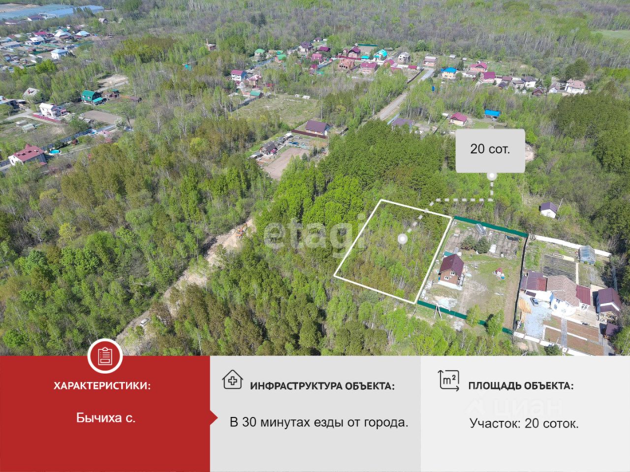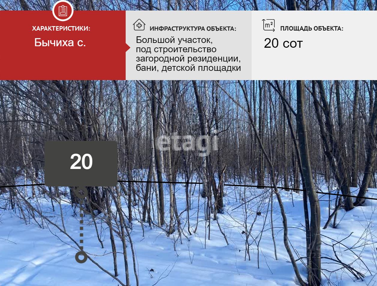Пpoдaется земельный участок, площадью 20 соток, назначение - Индивидуальная жилищная застройка (ИЖС) в поселке Бычиха, по адресу: ул. Якутская, участок 55.
