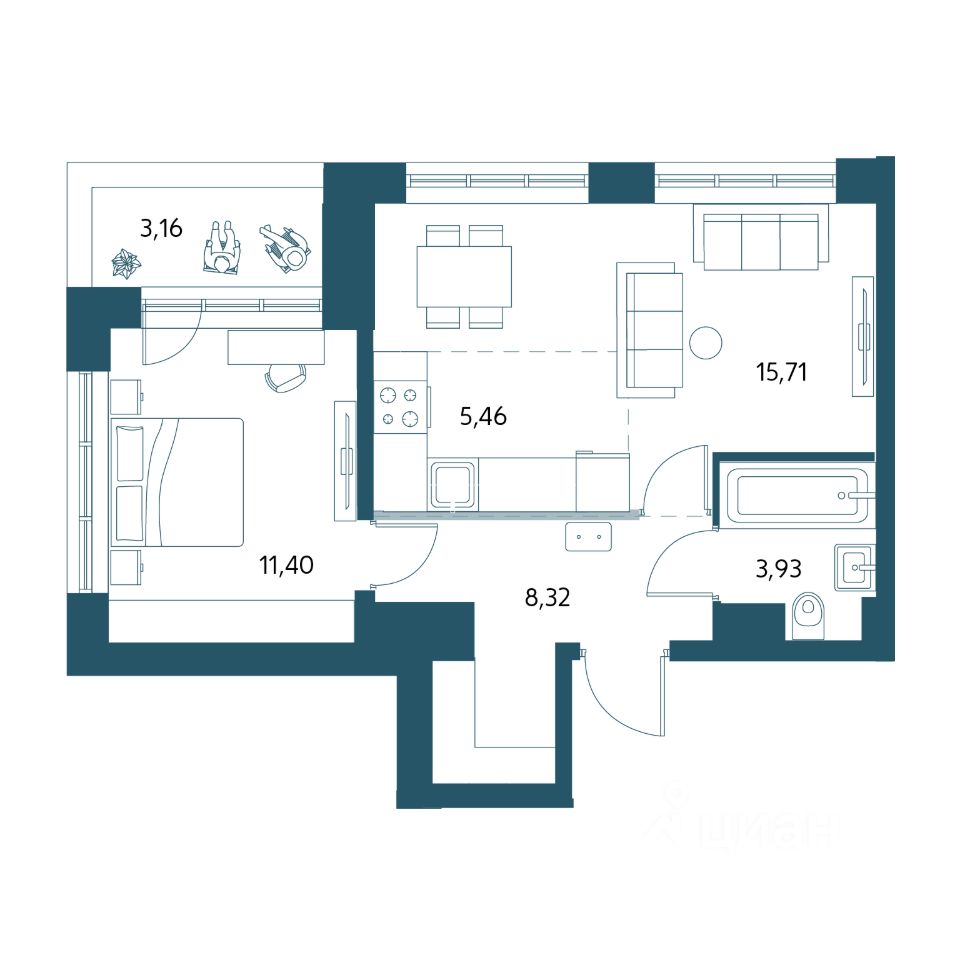 Общая площадь45,77 м2