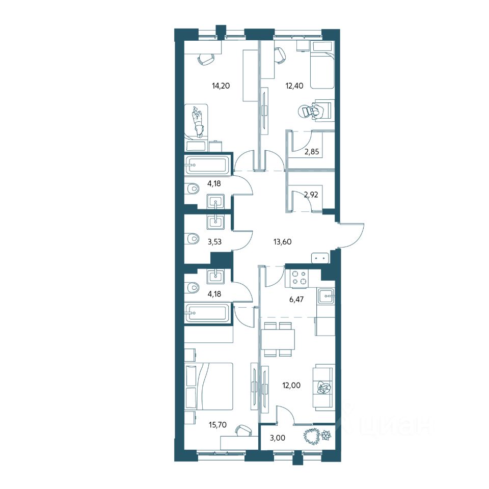 О квартире: Просторная кухня-гостиная Гардеробные 3 санузла 3 спальни Окна выходят на 2 стороны Система умная квартира с системой предупреждения протечек воды, автоматическое регулирование температуры, дистанционное управление электроприборами из мобильного приложения