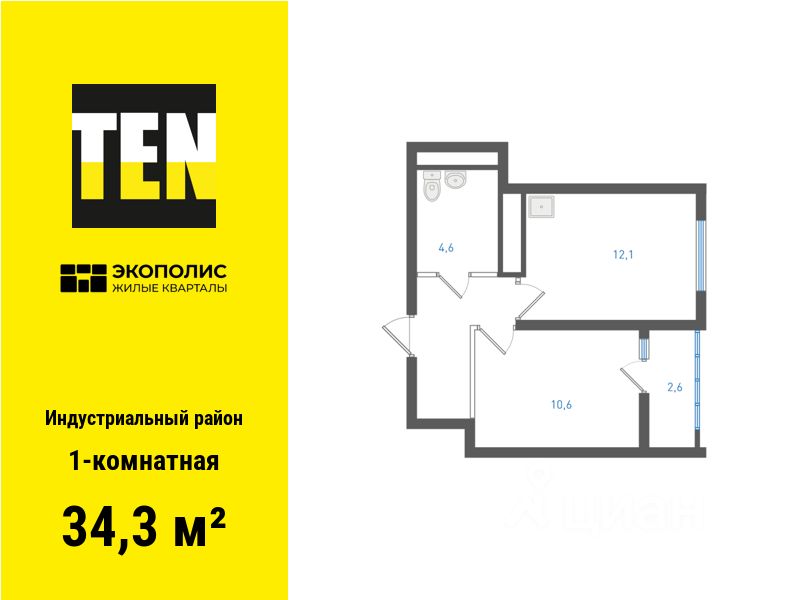Квартира в ЖК ''Экополис'' в Индустриальном районе от застройщика TEN девелопмент! Ключи в 3 квартале 2026 года.