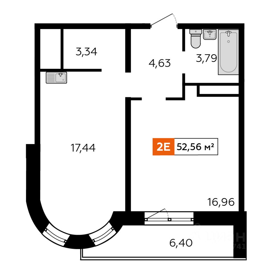 Продаётся 1-комнатная квартира 51,05 м2 от застройщика в жилом комплексе ''Аккорд''.