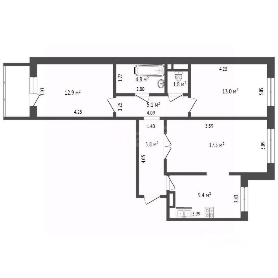 продам 3-к, Широкая, 42б5 100 000 ₽