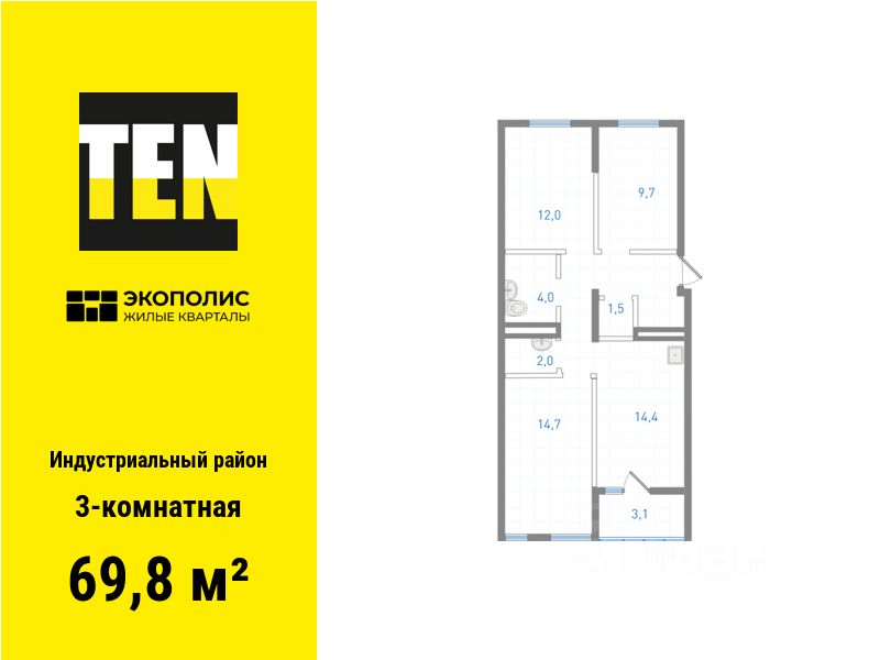 Квартира в ЖК ''Экополис'' в Индустриальном районе от застройщика TEN девелопмент! Ключи в 3 квартале 2026 года.