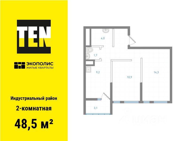 Квартира в ЖК ''Экополис'' в Индустриальном районе от застройщика TEN девелопмент! Ключи в 3 квартале 2026 года.