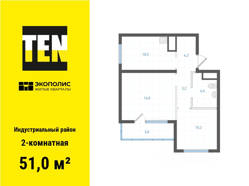 Квартира в ЖК ''Экополис'' в Индустриальном районе от застройщика TEN девелопмент! Ключи в 3 квартале 2026 года.