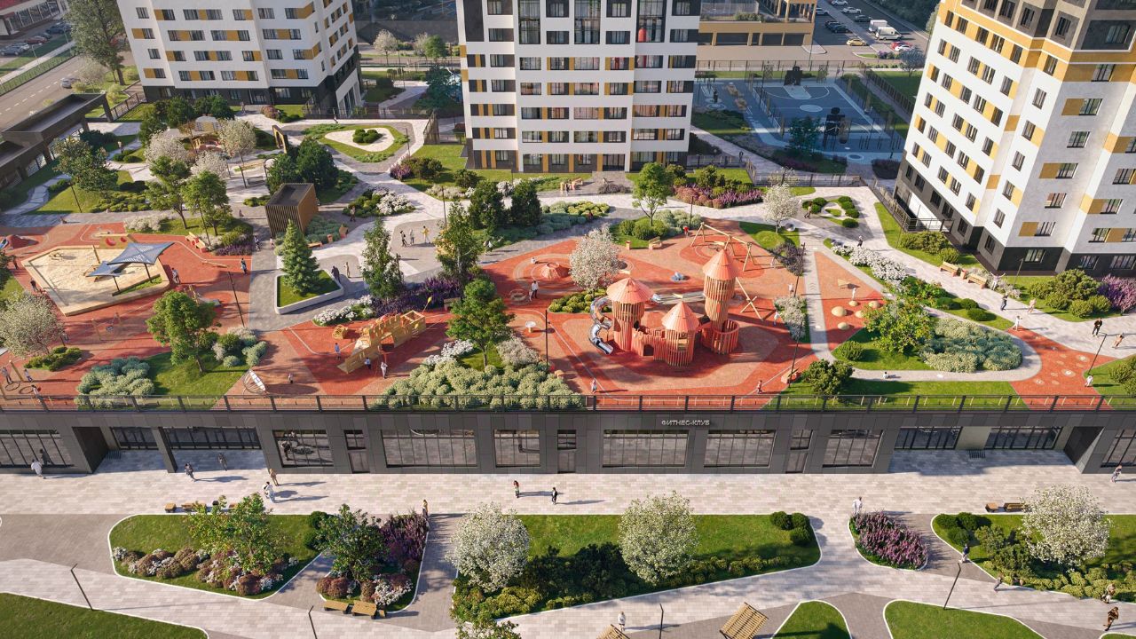 Сказочные дворы Дворы закрыты от машин и посторонних, при этом на территории всегда много света и пространства. Богатое озеленение, разнообразная геопластика, детские игровые и спортивные площадки, зоны для отдыха - все, чтобы каждому жителю было приятно проводить здесь время.