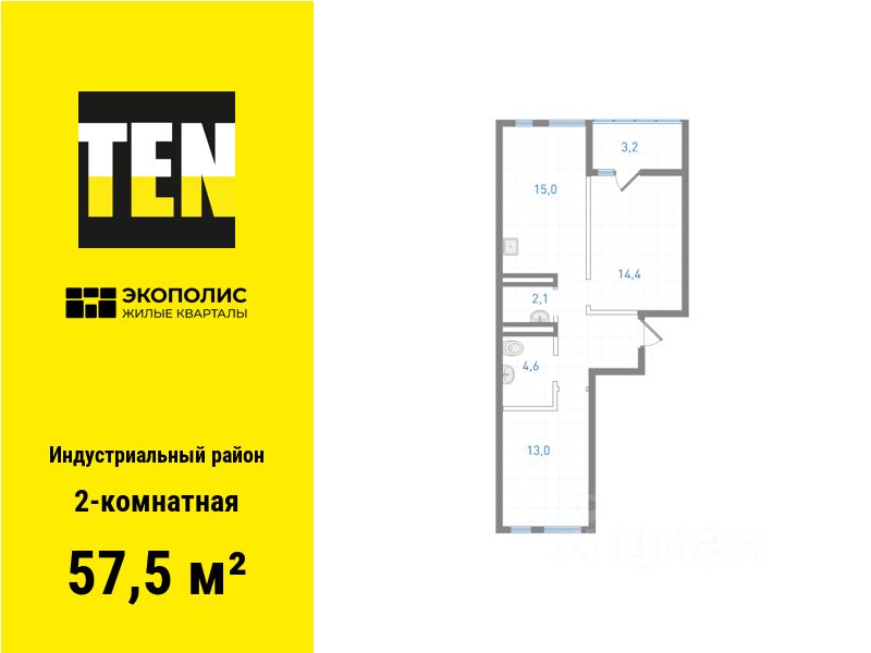 Квартира в ЖК ''Экополис'' в Индустриальном районе от застройщика TEN девелопмент! Ключи в 3 квартале 2026 года.