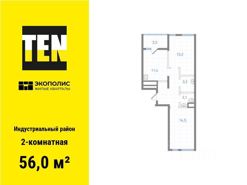 Квартира в ЖК ''Экополис'' в Индустриальном районе от застройщика TEN девелопмент! Ключи в 3 квартале 2026 года.