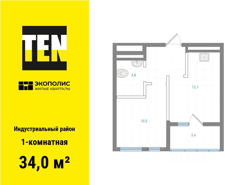 Квартира в ЖК ''Экополис'' в Индустриальном районе от застройщика TEN девелопмент! Ключи в 3 квартале 2026 года.