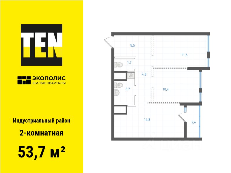 Квартира в ЖК ''Экополис'' в Индустриальном районе от застройщика TEN девелопмент! Ключи в 3 квартале 2026 года.